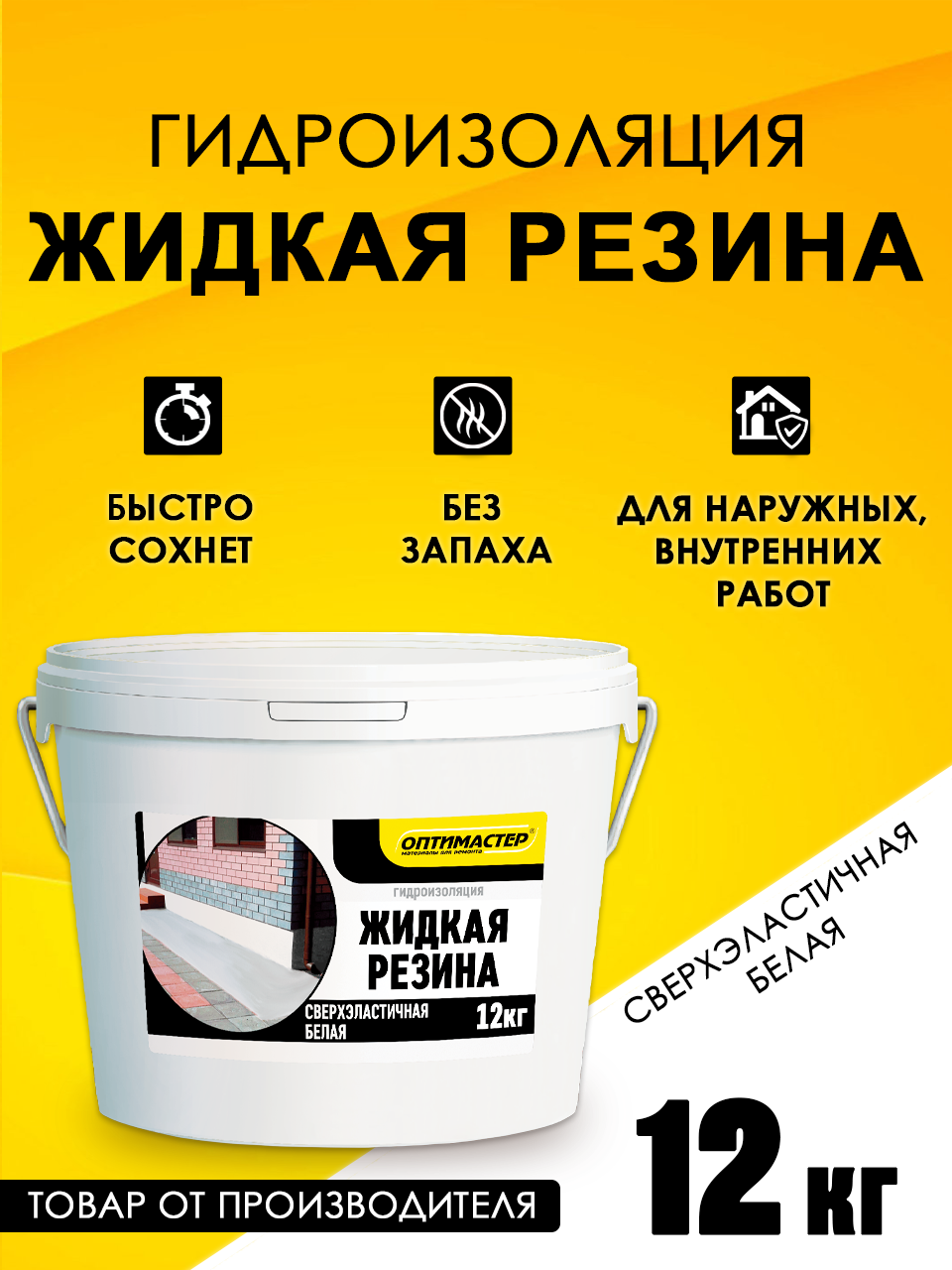 10 цен на Гидроизоляция "Жидкая Резина" 12 кг, белая, ТМ "Оптимастер"