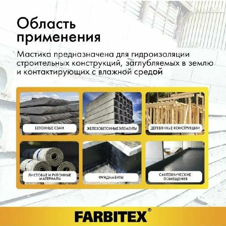 Мастика гидроизоляционная битумная FARBITEX 17 кг информация: