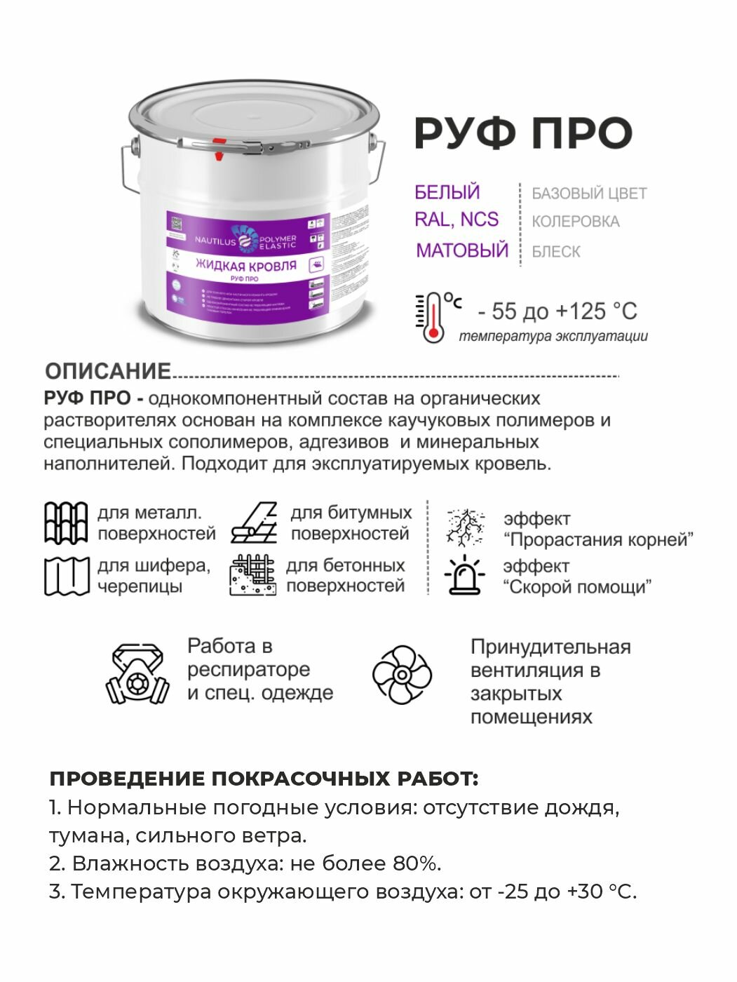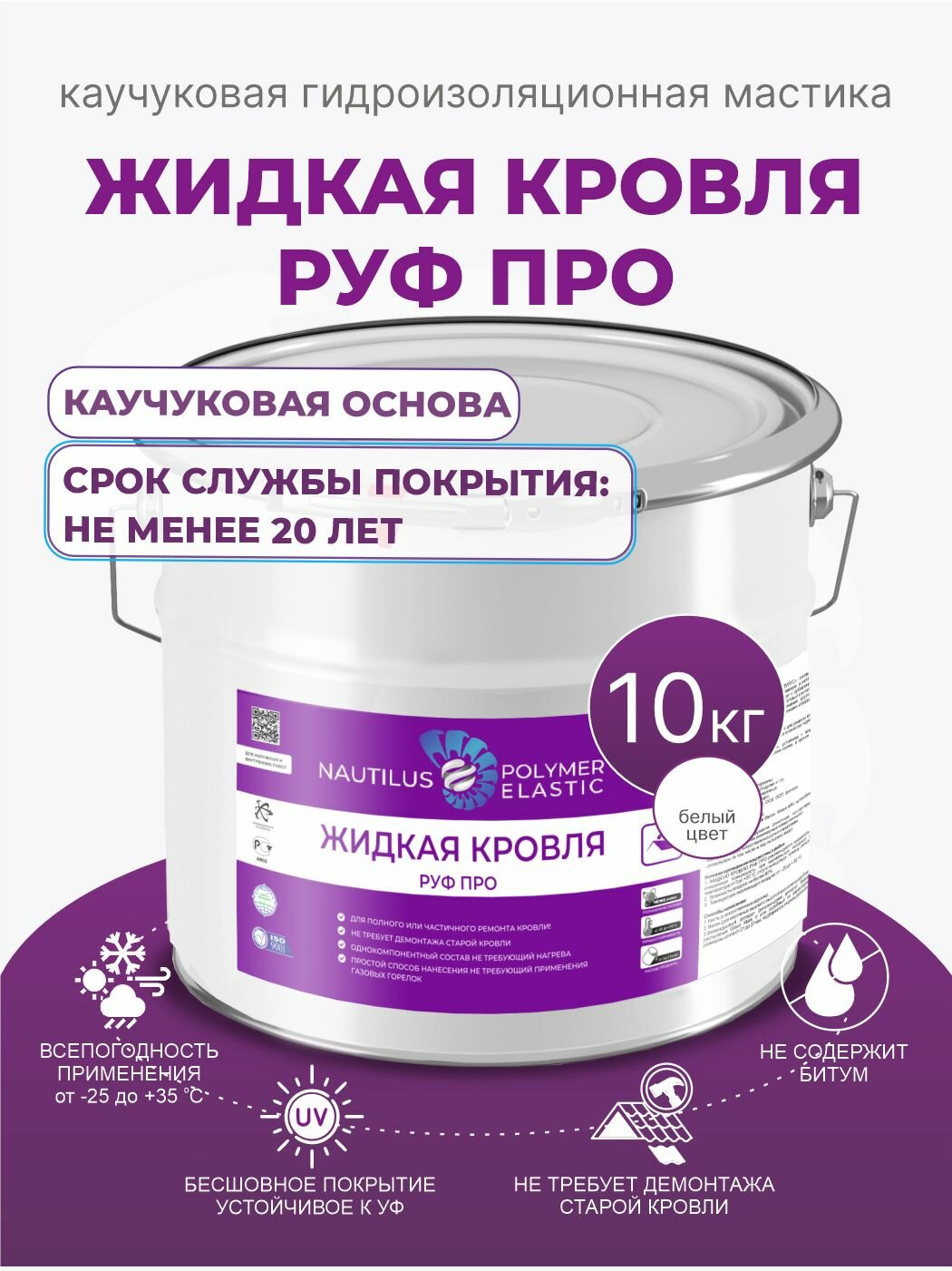 Жидкая кровля Nautilus Руф Про, 10л информация: