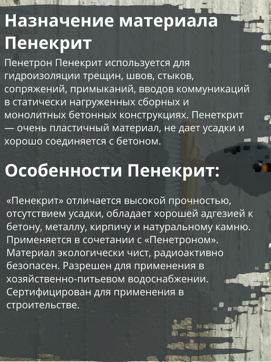 10 цен на Пенекрит Пенетрон Гидроизоляционная мелкозернистая сухая смесь , 5 кг
