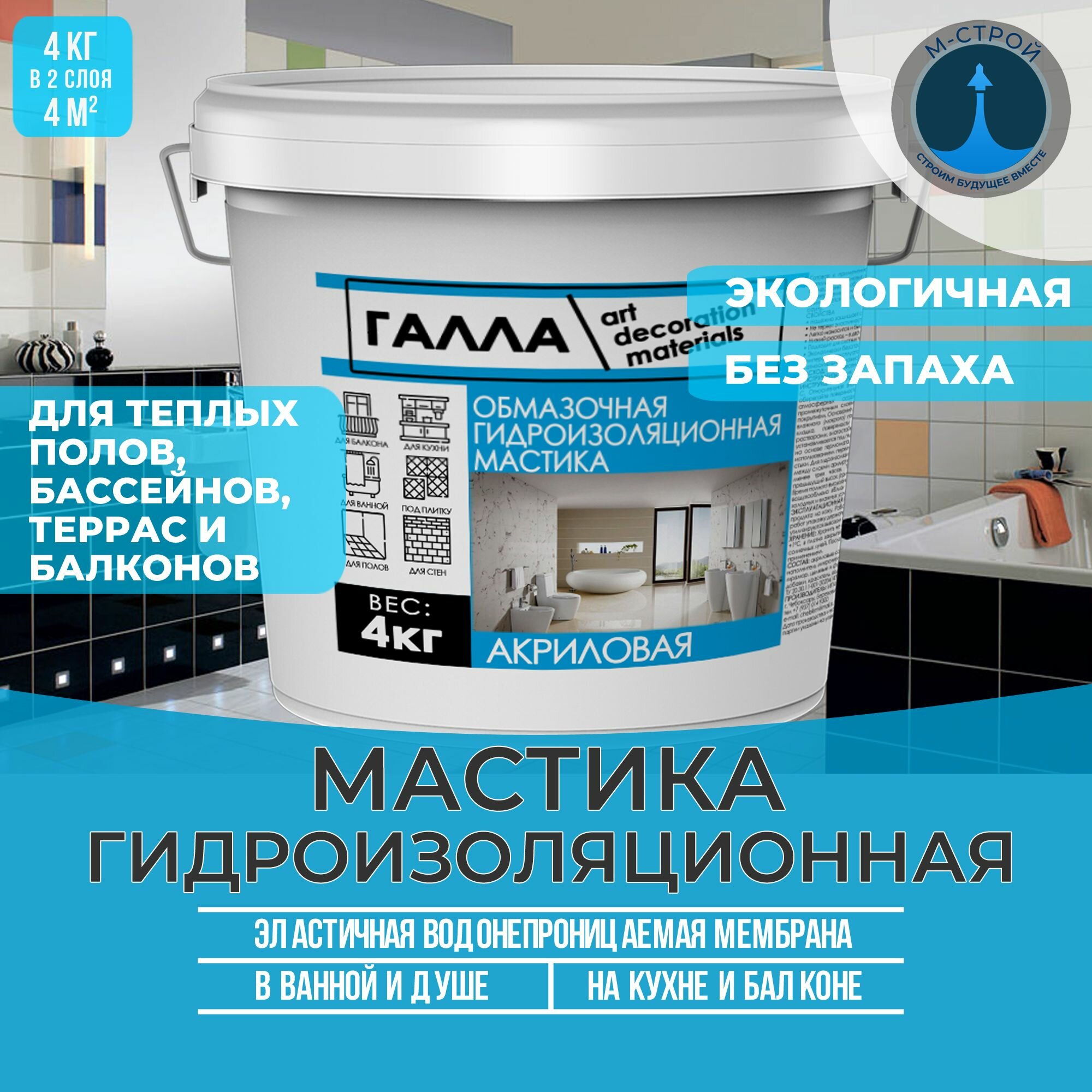 Отзывы на Гидроизоляционная обмазочная мастика акриловая галла, пп ведро 4,0 кг