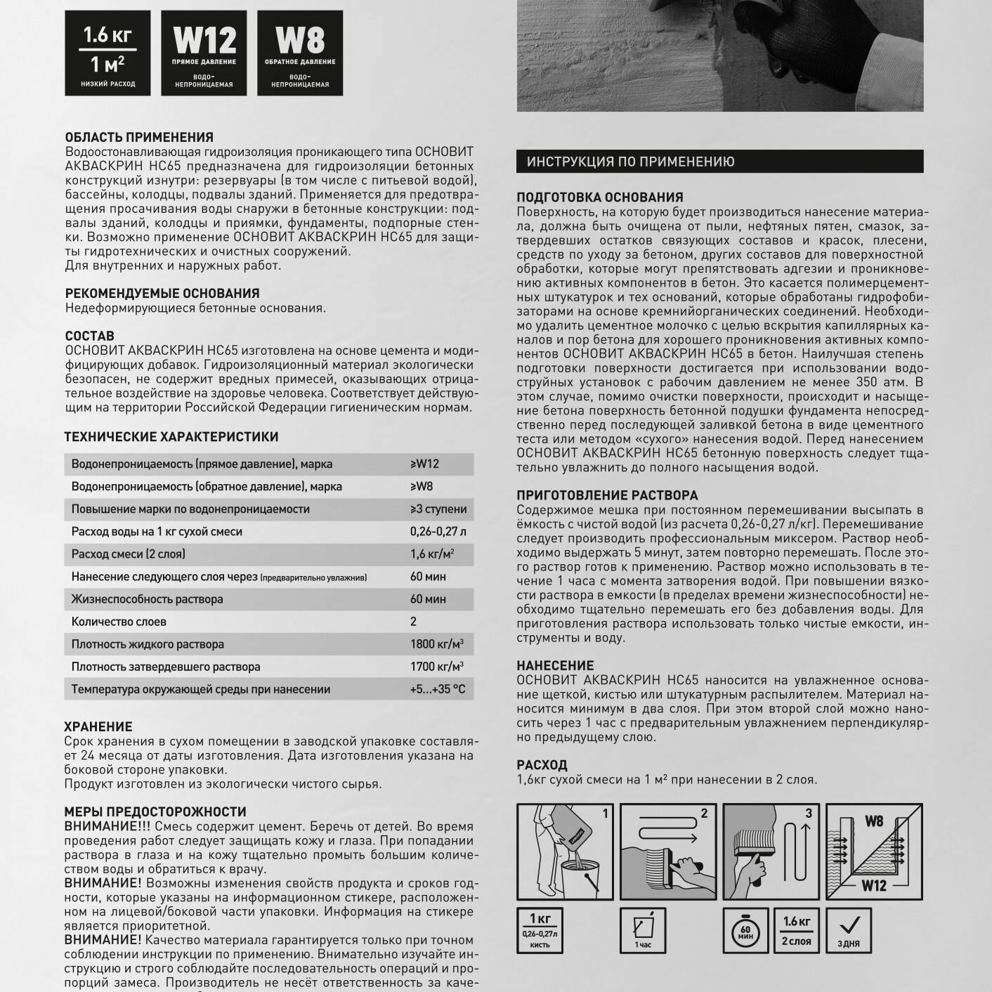 Отзывы на Гидроизоляция проникающая Основит Aкваскрин HC65 НС65, для бетона, серая, 8 кг