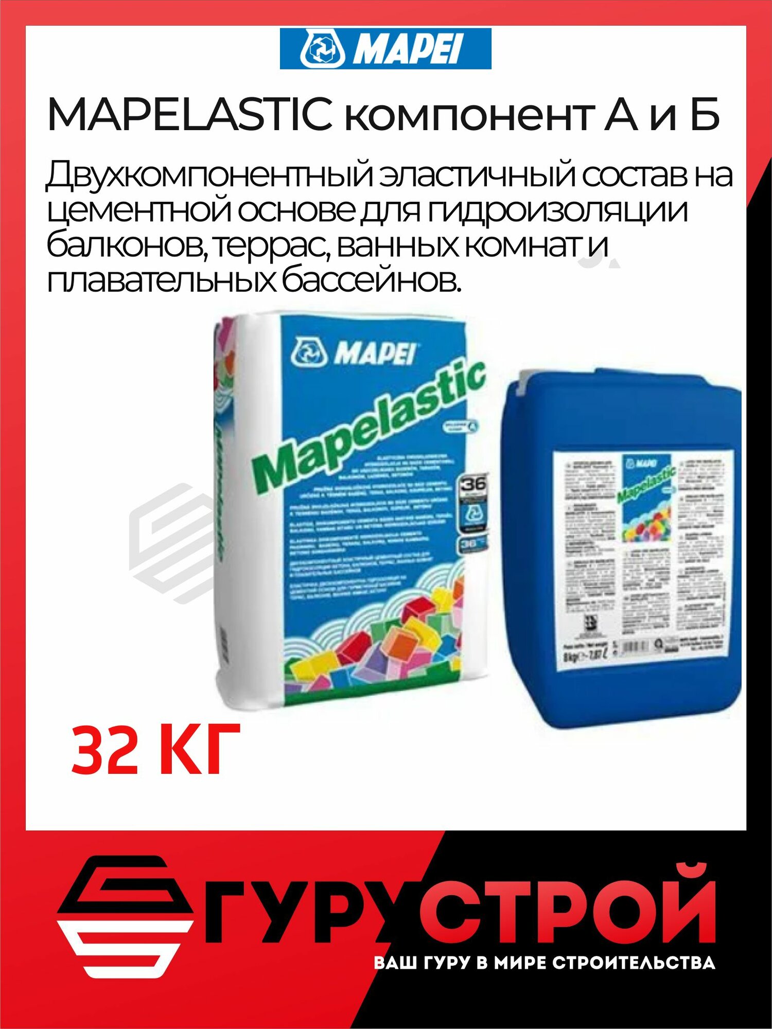 MAPELASTIC состав для гидроизоляции компонент А и B 32 кг MAPEI информация:
