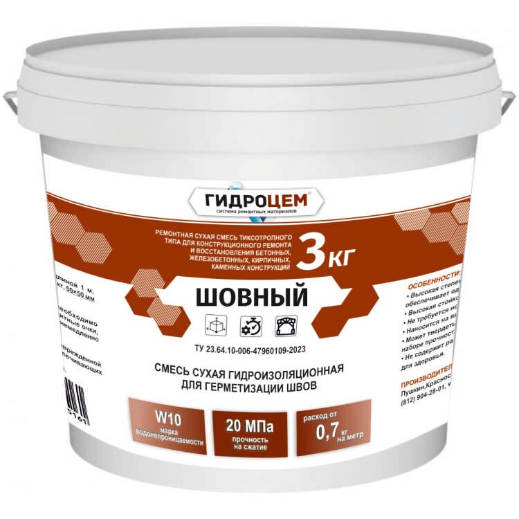 Шовная гидроизоляция для бассейнов, подвалов и фундаментов , Гидроцем, 3 кг информация: