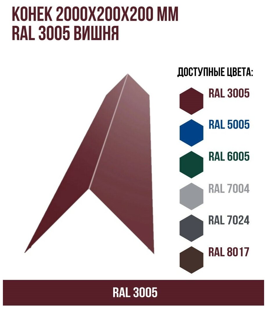 Конек 2000х200х200мм RAL 3005 Вишня(упк. 2шт) информация:
