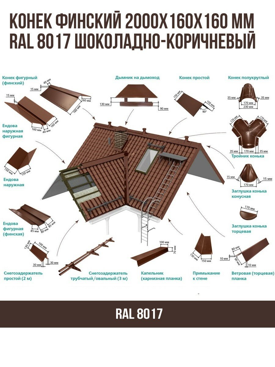 Конек финский 2000х160мм RAL 8017 Шоколадно-коричневый информация: