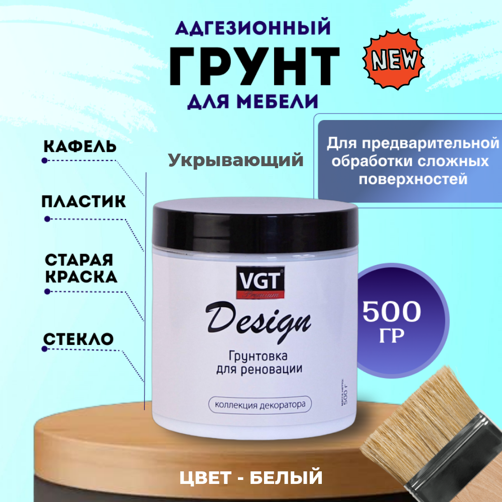 Адгезионный укрывающий шелковый грунт для мебели и декора VGT Белый информация: