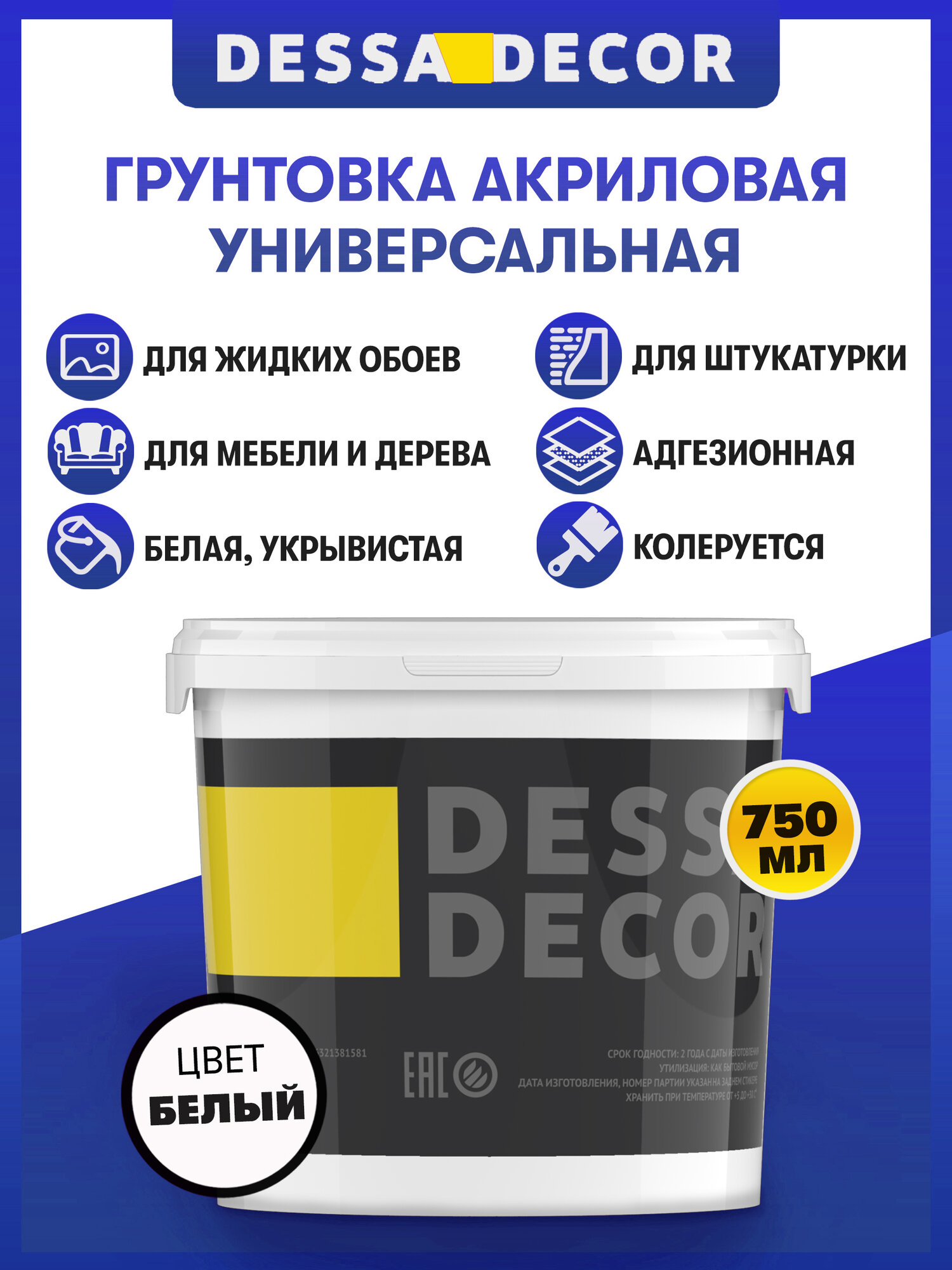 Грунтовка для мебели под покраску адгезионная DESSA DECOR 750 мл, цвет белый информация: