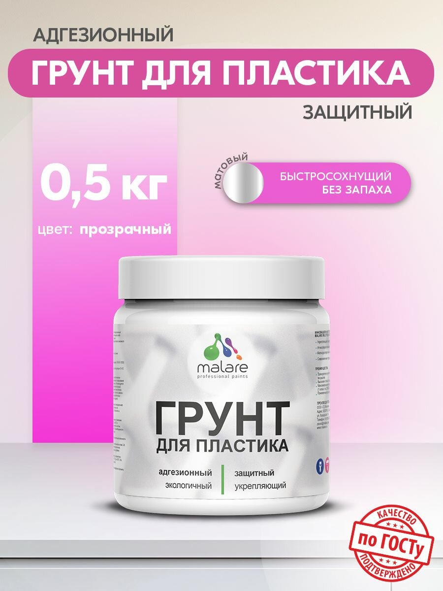 Грунт для пластика Malare акриловый адгезионный, без запаха быстросохнущий, полупрозрачный, 0.5 кг. информация: