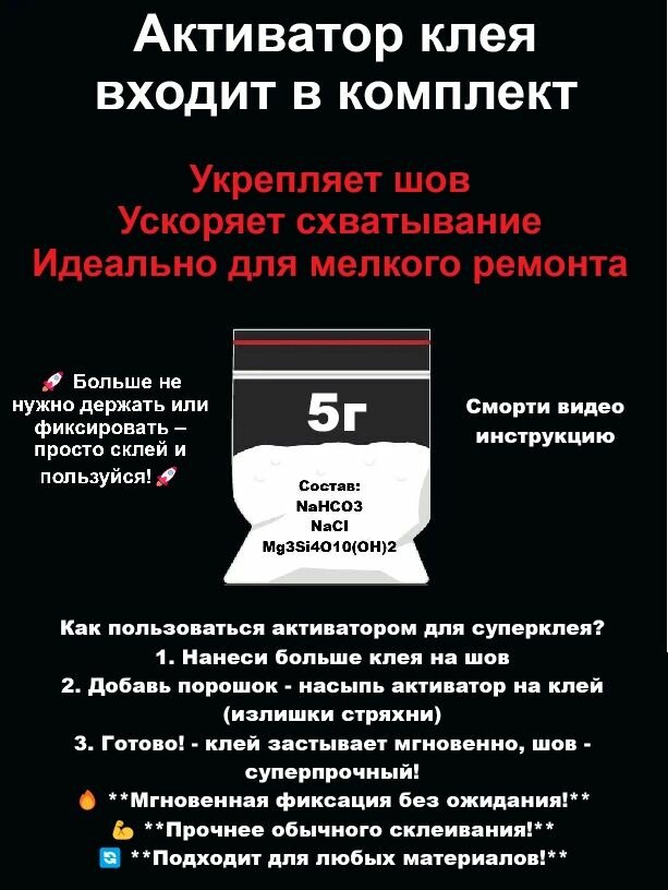 0 отзывов, средняя оценка 0. Чтобы купить «Супер клей с активатором клея, комплект» по лучшей цене мы сканируем авито, алиэкспресс, маркет, озон, савеловский, плеер, горбушку, беру, официальные сайты и находим минимальную. Администрация не несет ответсвенность актуальность цен на Супер клей с активатором клея, комплект, более подробно узнавайте на сайте магазина.