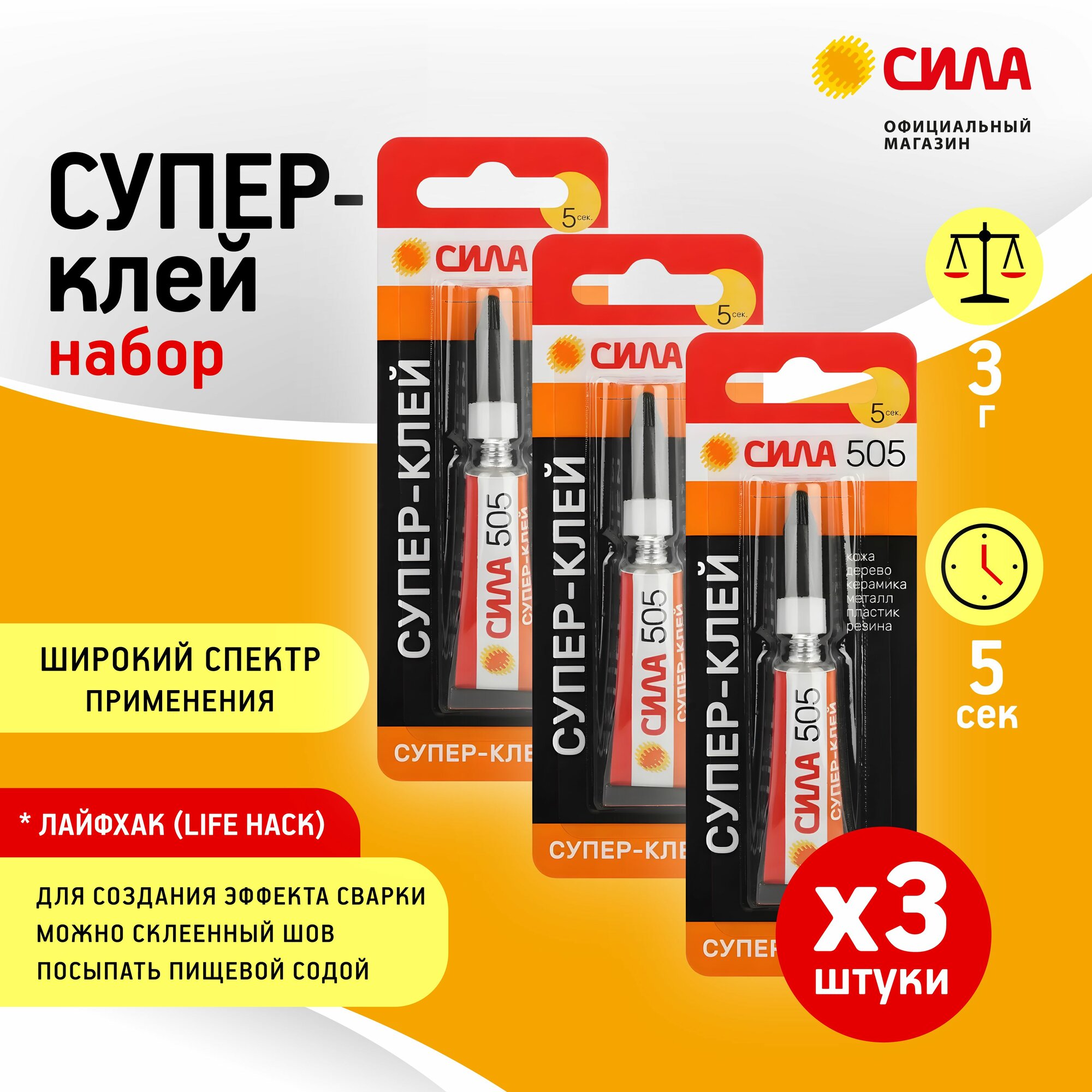 Супер-клей сила SET3-505-31 3 шт по 3 г прозрачный в блистере информация: