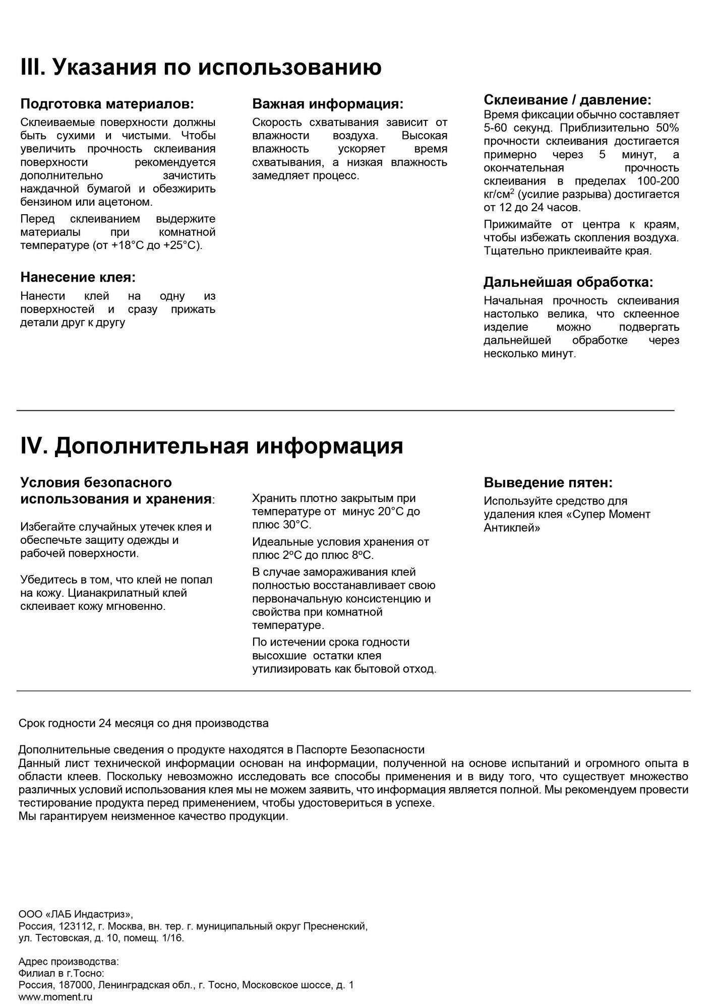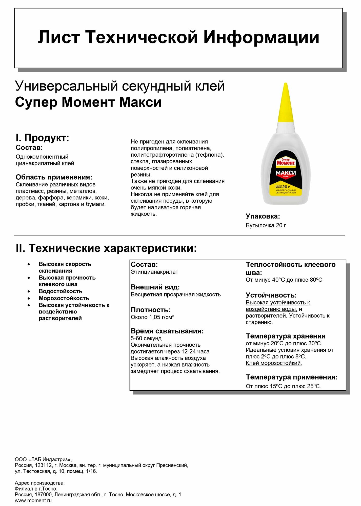 Клей универсальный моментальный цианоакрилатный Супер Момент Макси, термостойкий до 110С, химстойкий 20 г 3040007 информация: