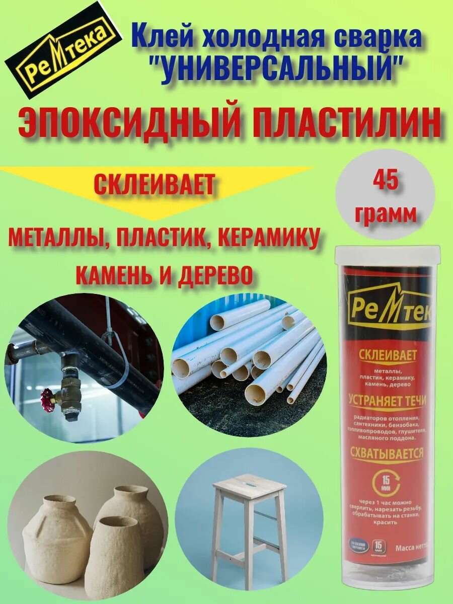 Клей холодная сварка РЕМТЕКА универсальная 45гр. для прочного соединения и герметизации деталей в различных сочетаниях информация: