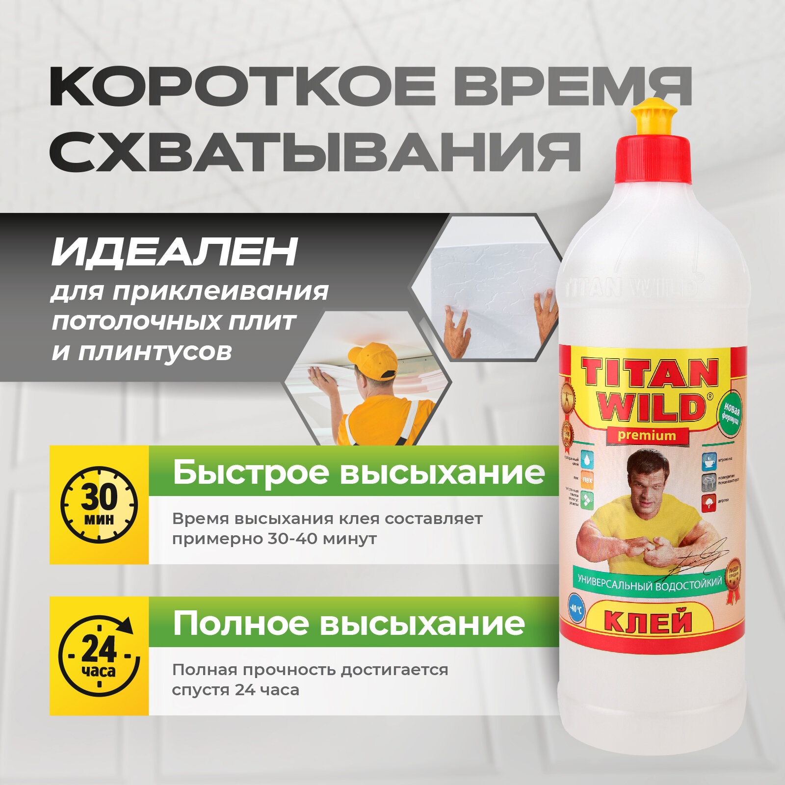 Клей Titan TWP1.0 - универсальный прозрачный водостойкий клей объемом 1 литр информация: