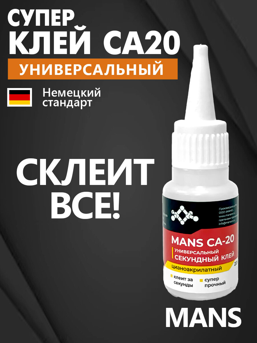 10 цен на Супер клей CA-20 (космофен, cosmofen, cosmo CA-500.200) MANS клей универсальный цианоакрилатный влагостойкий супер секундный, 20 гр