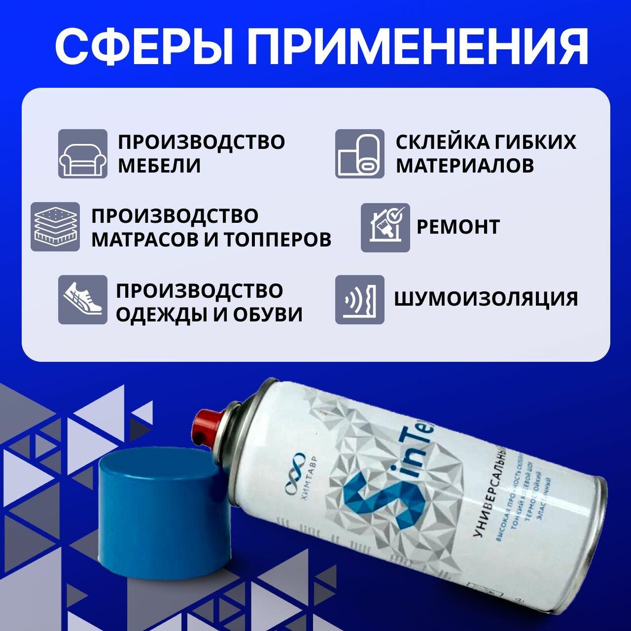 Клей мебельный SinTex спрей аэрозольный универсальный 0.4 кг, 1 шт. для ткани и кожи информация: