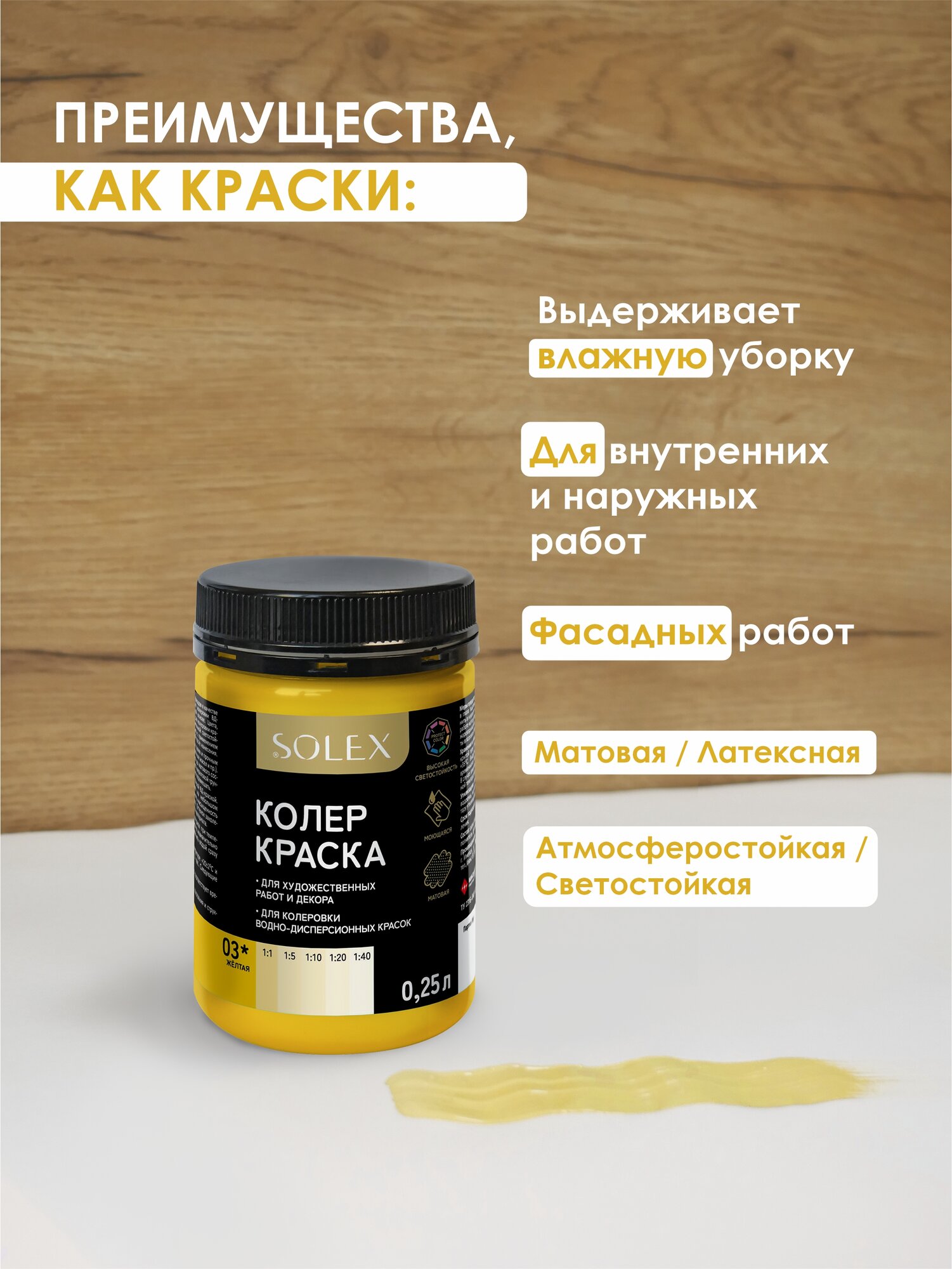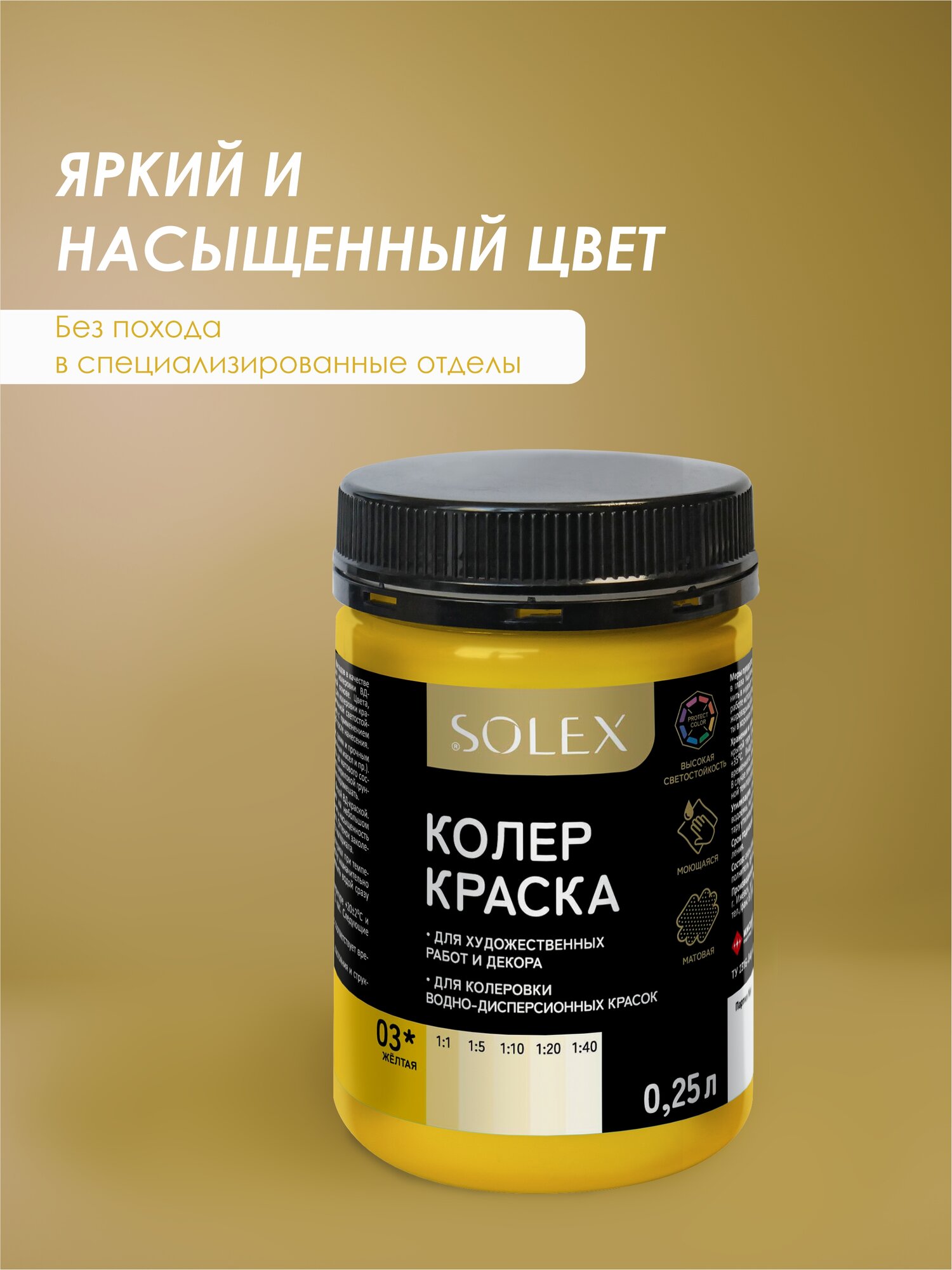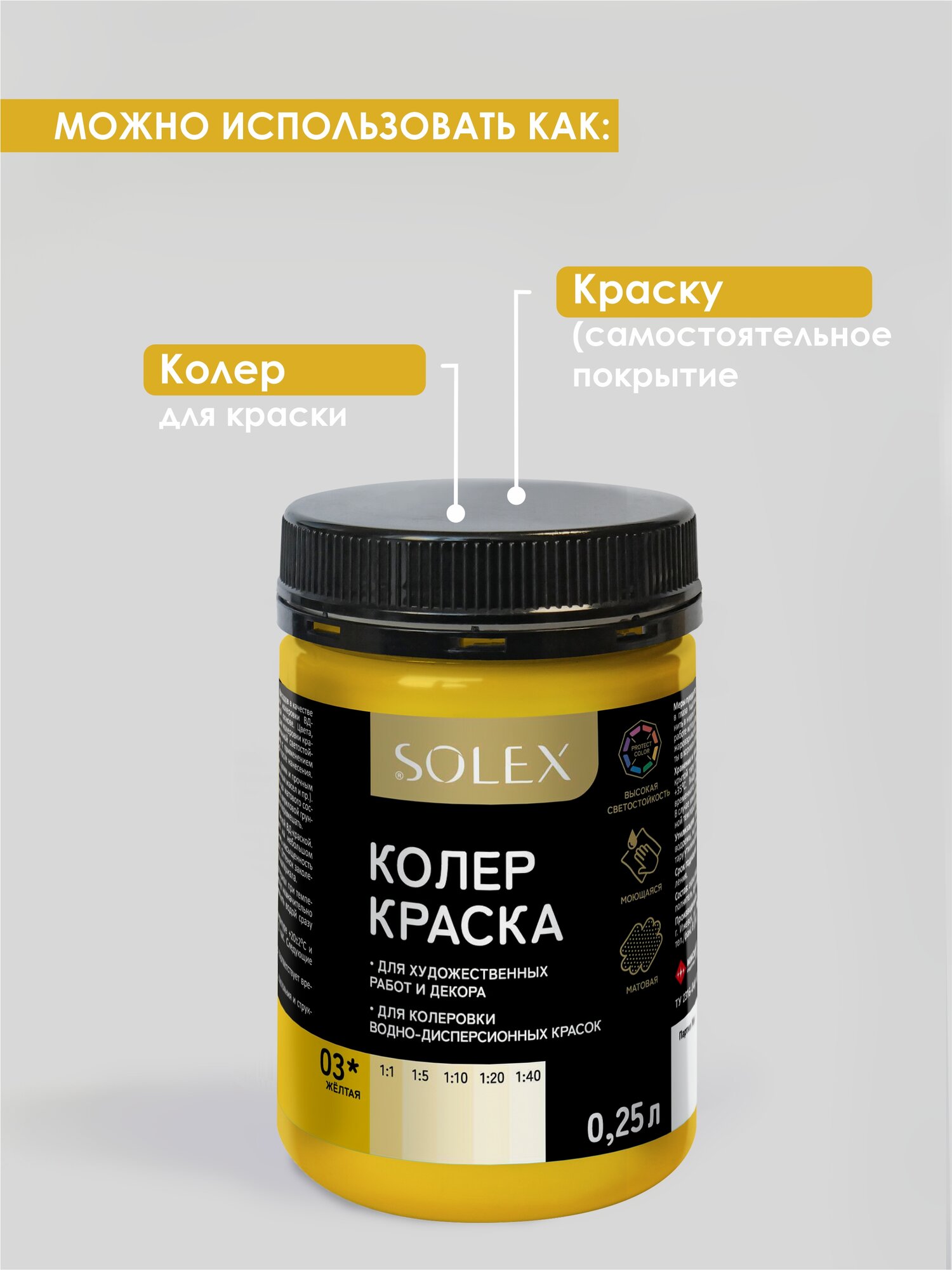 Краска колеровочная SOLEX желтый 0,25л банка ПЭТ информация: