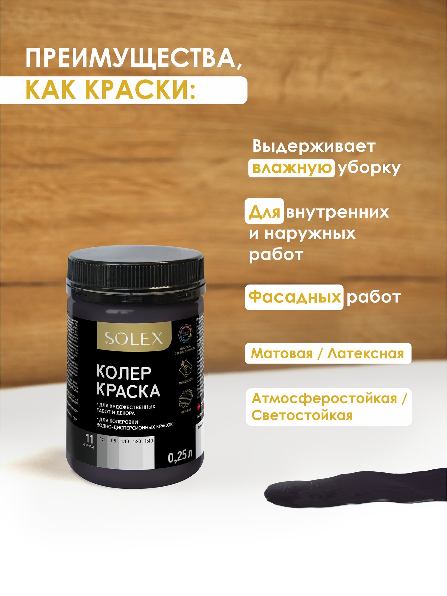 Краска колеровочная SOLEX черный 0,25л банка ПЭТ информация: