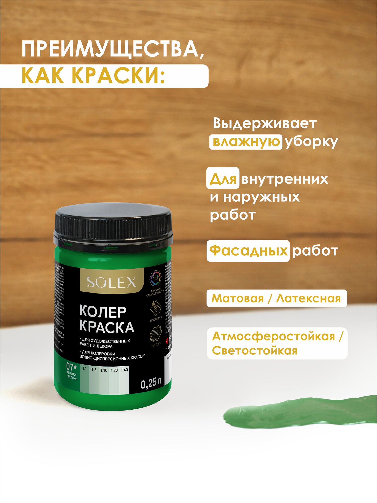 Краска колеровочная SOLEX зеленое яблоко 0,25л банка ПЭТ информация: