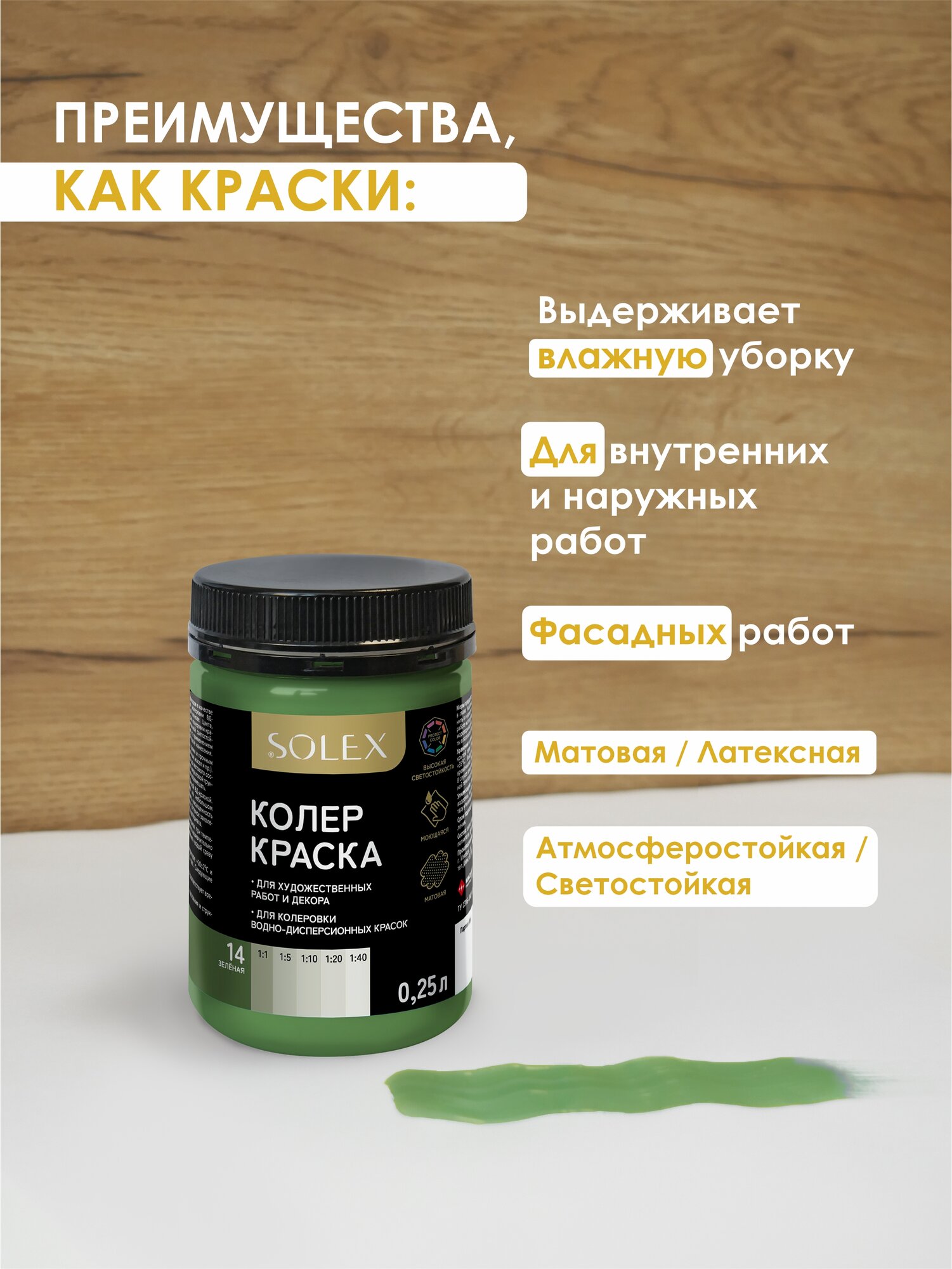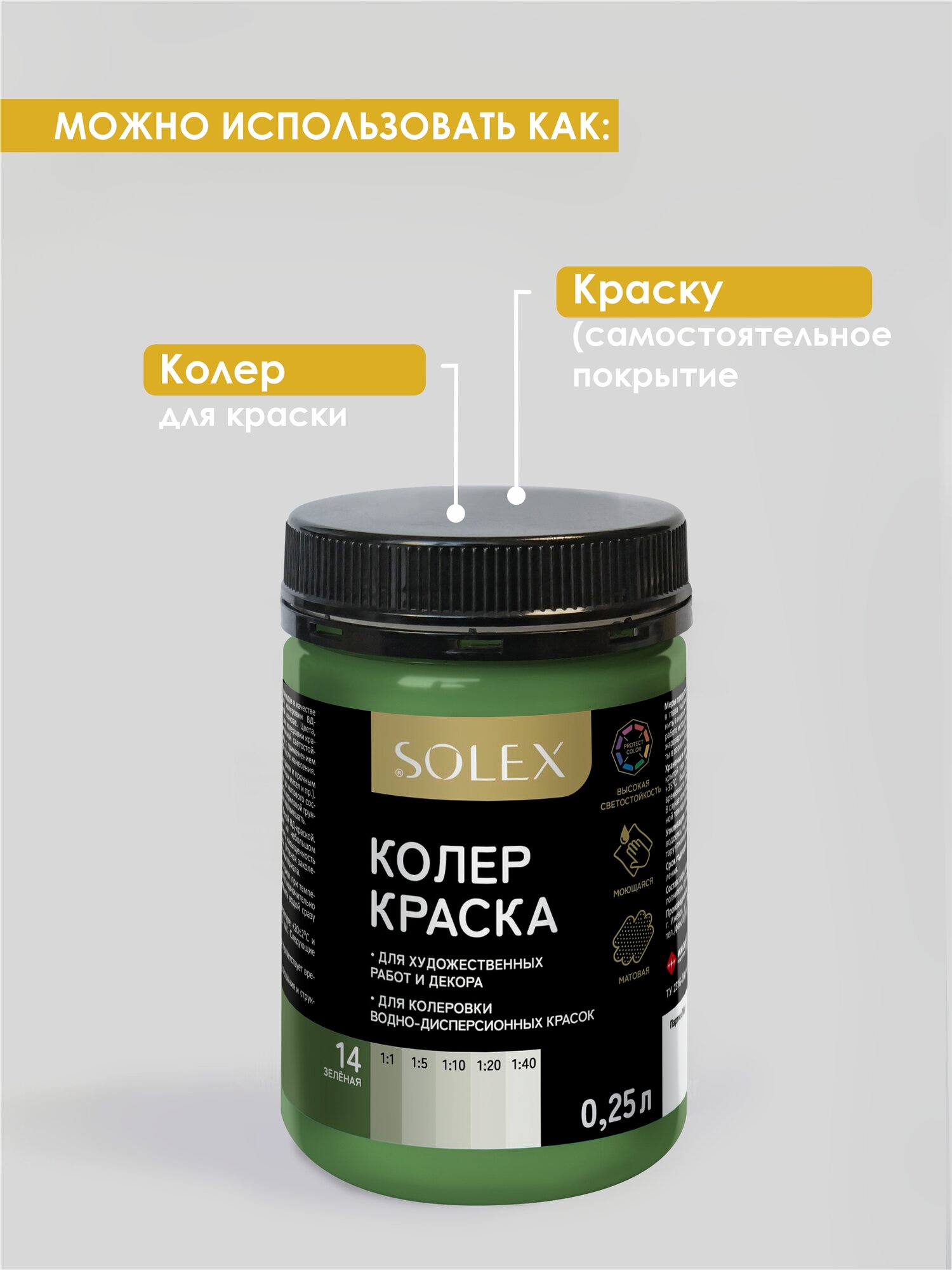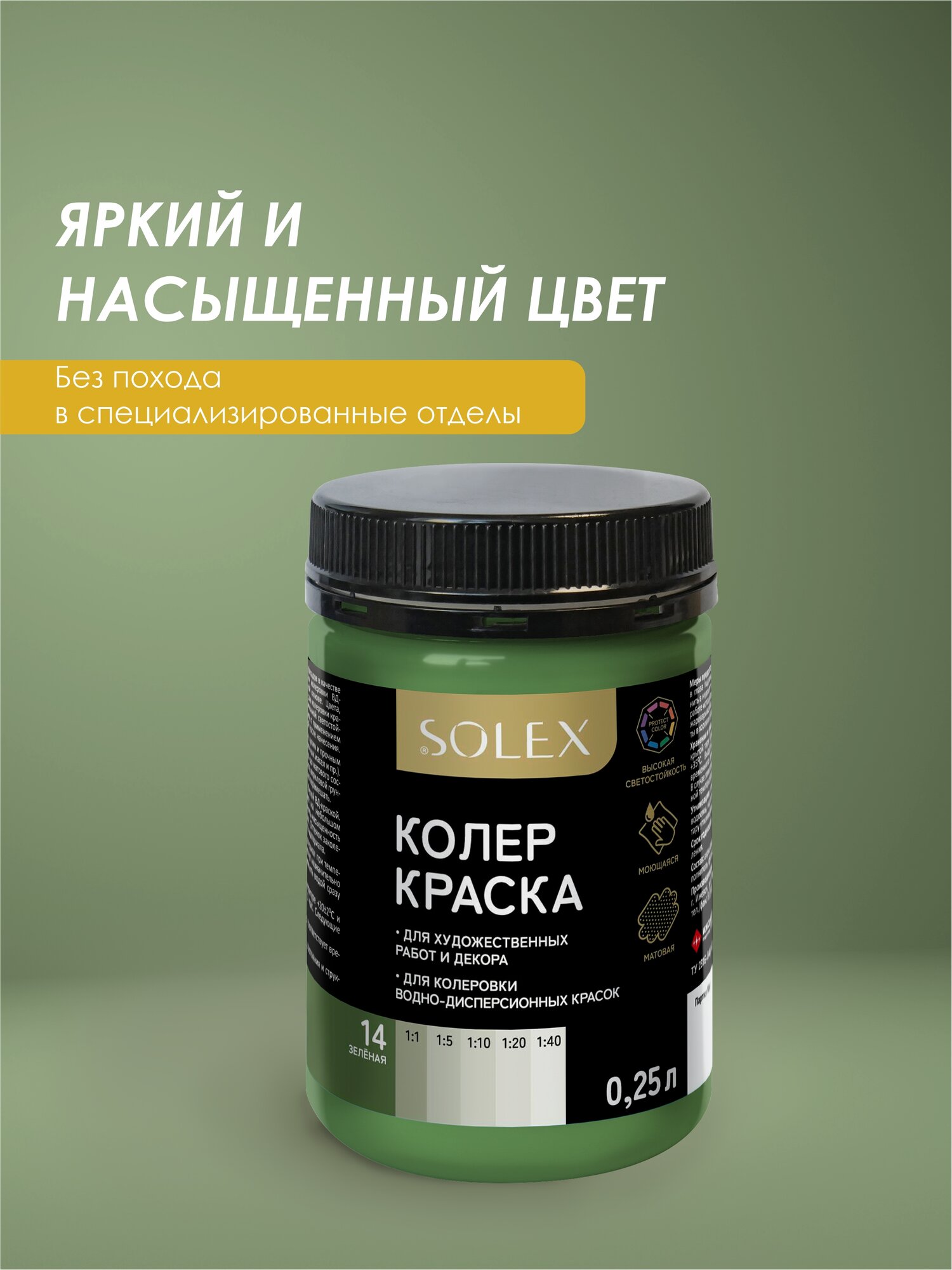 Краска колеровочная SOLEX зеленый 0,25л банка ПЭТ информация: