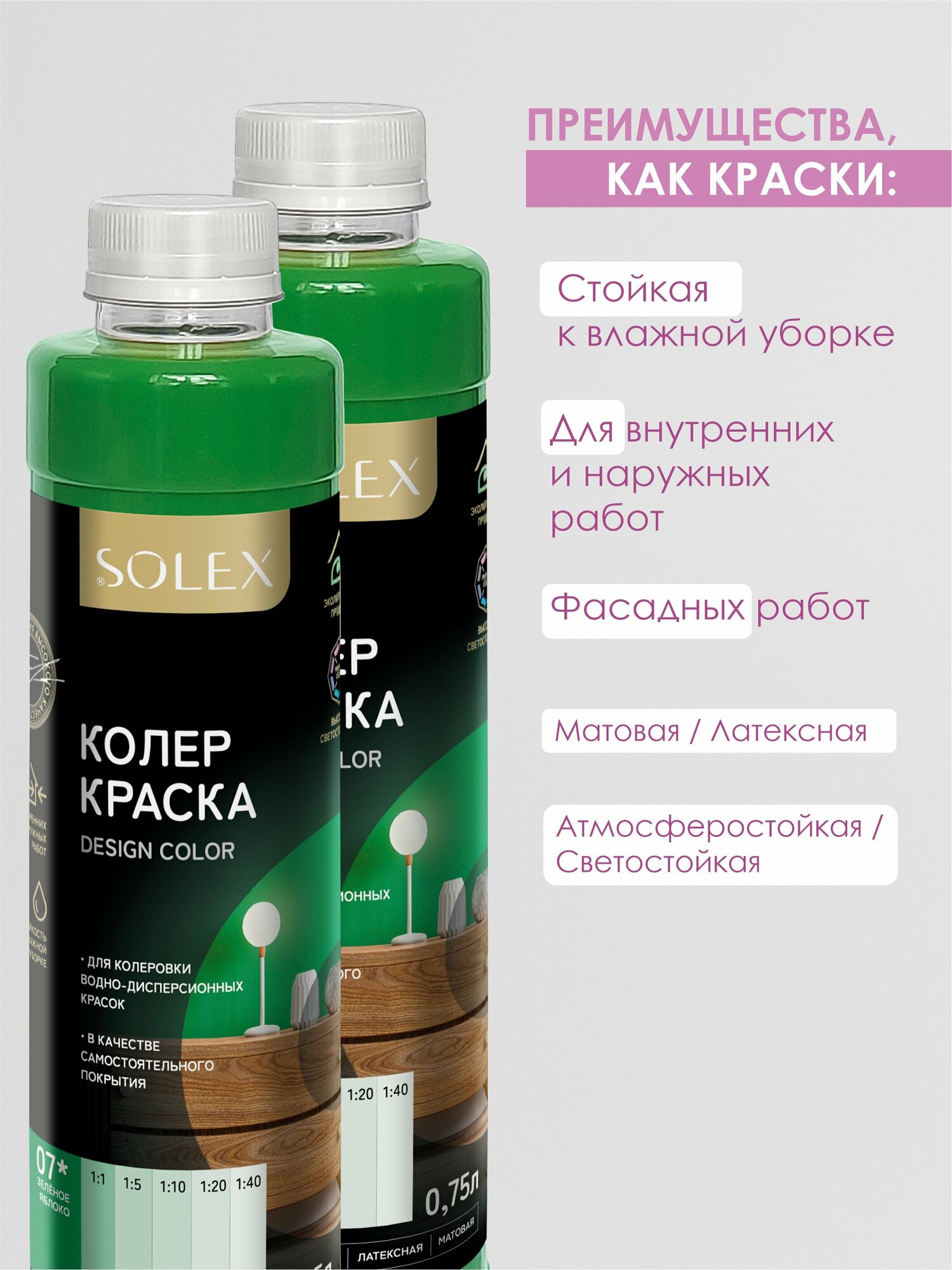 Краска колеровочная SOLEX зеленое яблоко 0,75л бутылка ПЭТ информация: