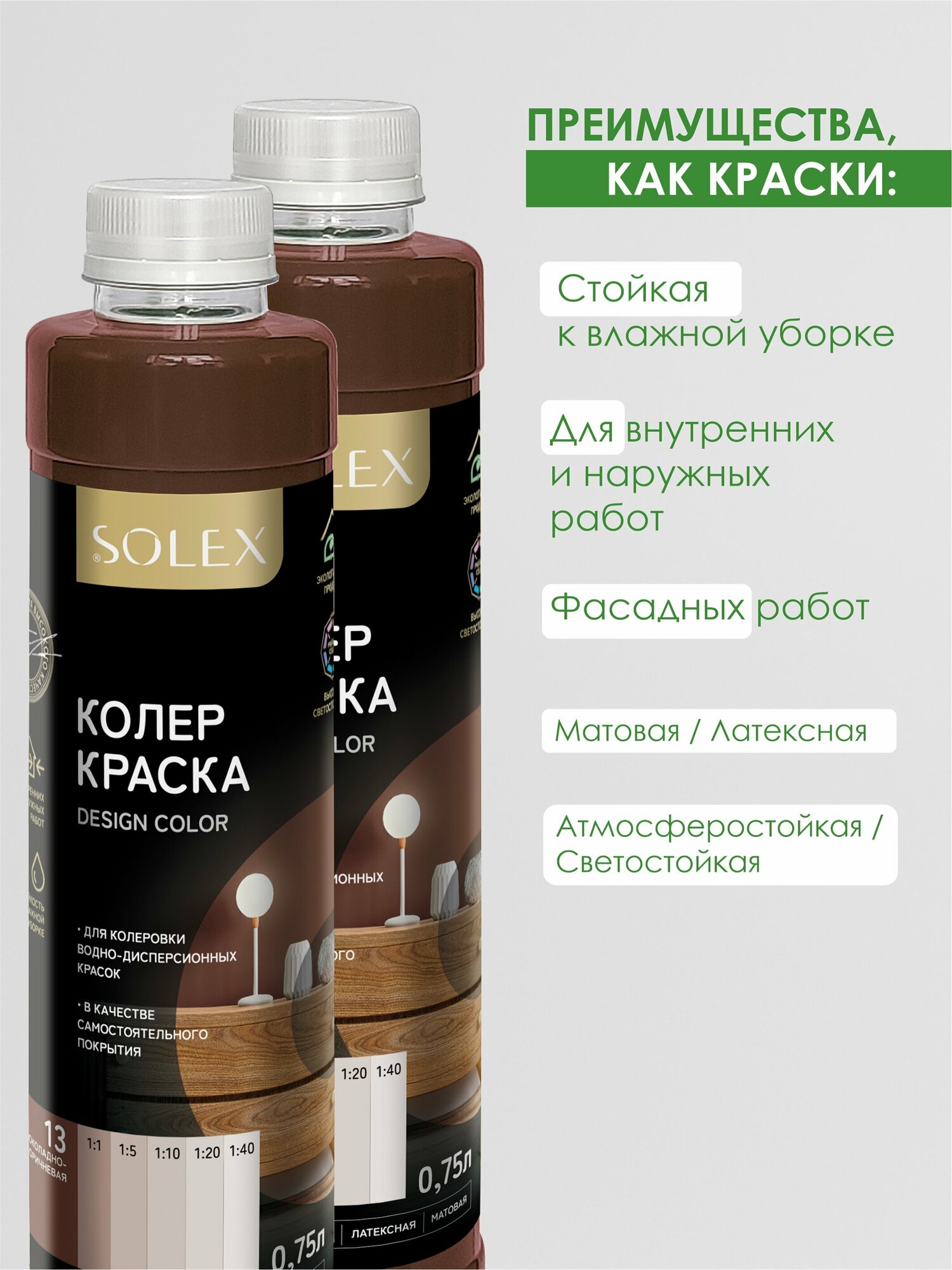 Краска колеровочная SOLEX шоколадно-коричневый 0,75л бутылка ПЭТ информация: