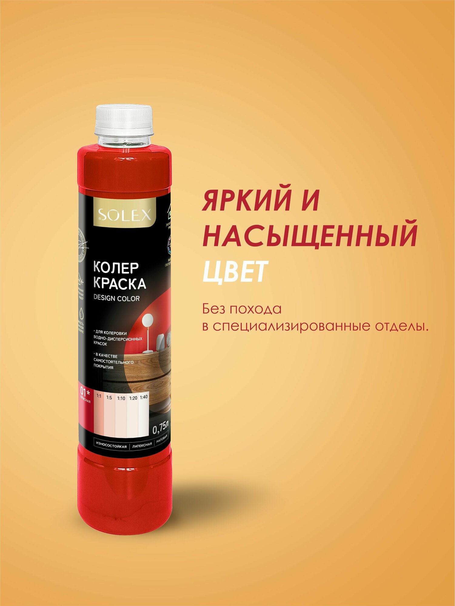 Краска колеровочная SOLEX красный 0,75л бутылка ПЭТ информация: