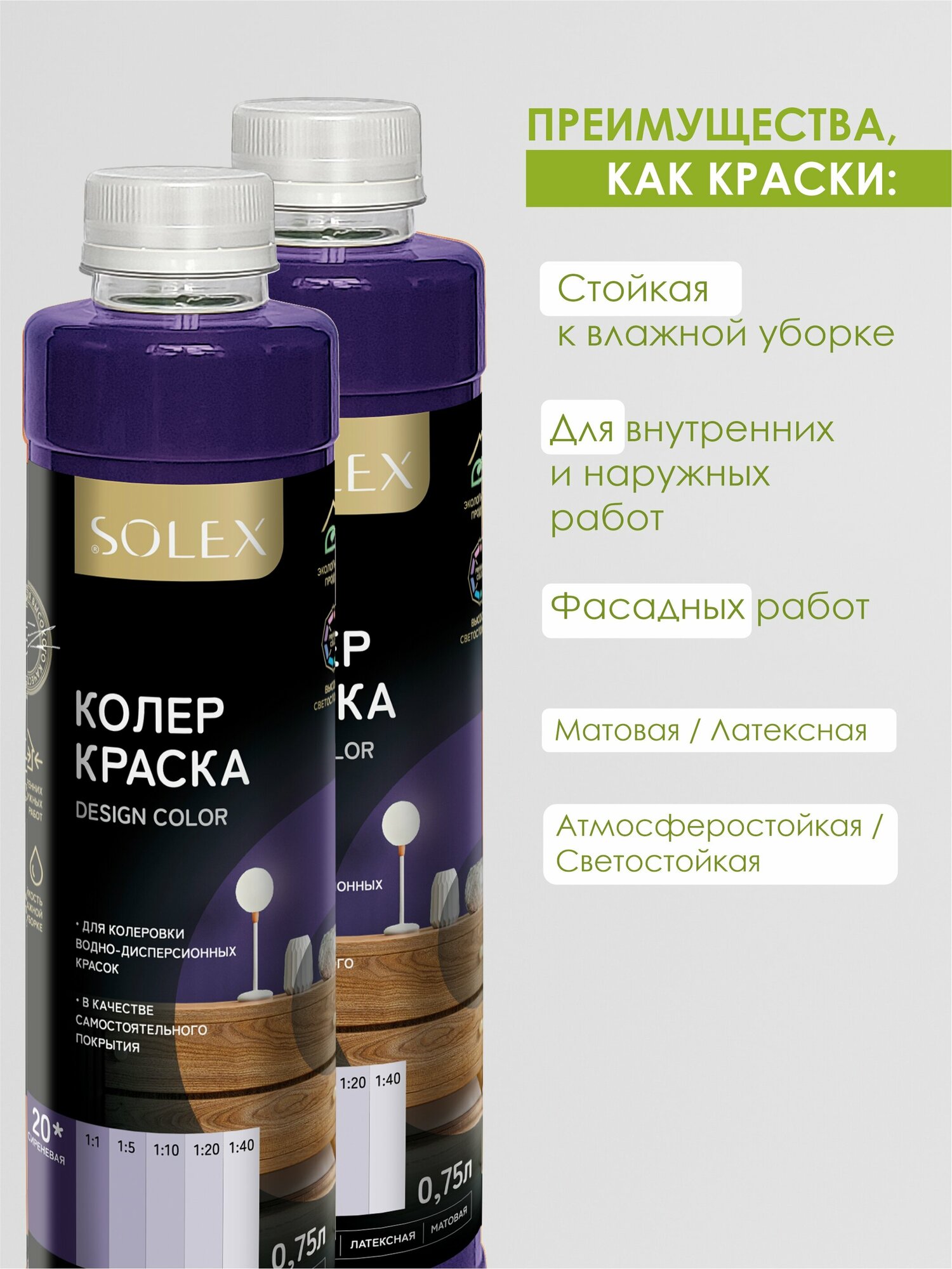 Краска колеровочная SOLEX сиреневый 0,75л бутылка ПЭТ информация: