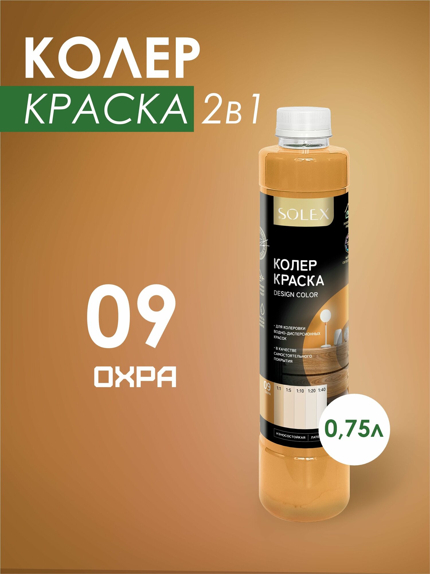 Краска колеровочная SOLEX охра 0,75л бутылка ПЭТ информация: