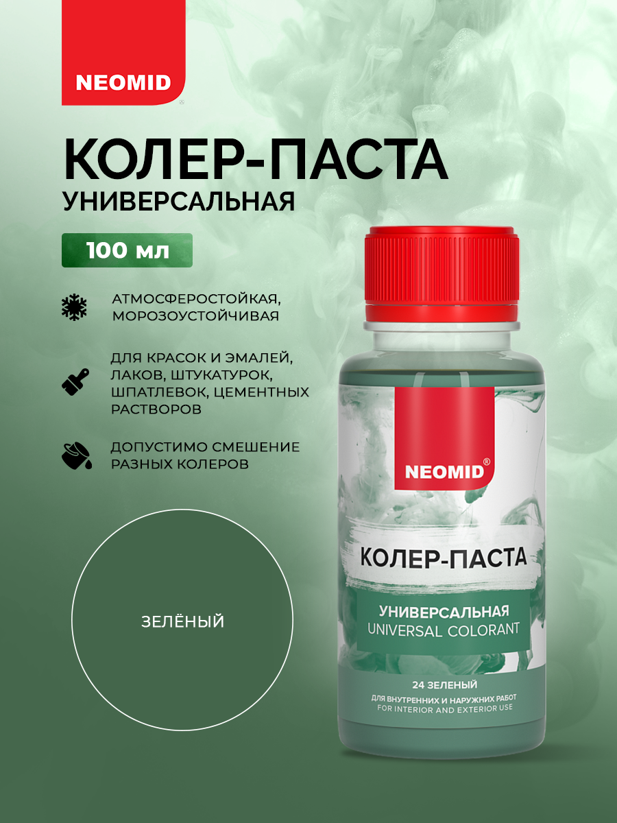 Колер-паста Neomid универсальный для краски, зеленый №24, 100мл информация: