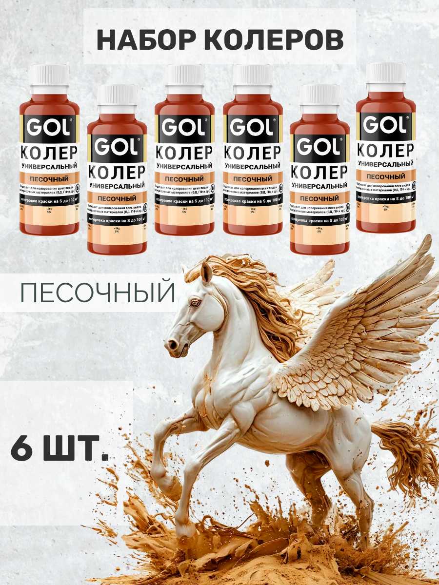 Набор колер для краски песочный универсальный GOL для гипса, лака, эмали, штукатурки, затирки. 6 шт. информация: