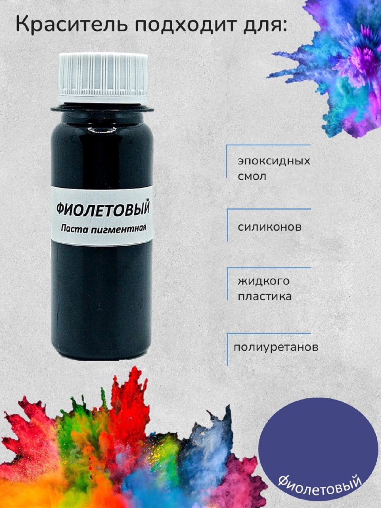 Краситель для эпоксидной смолы, Фиолетовый, 50 грамм информация: