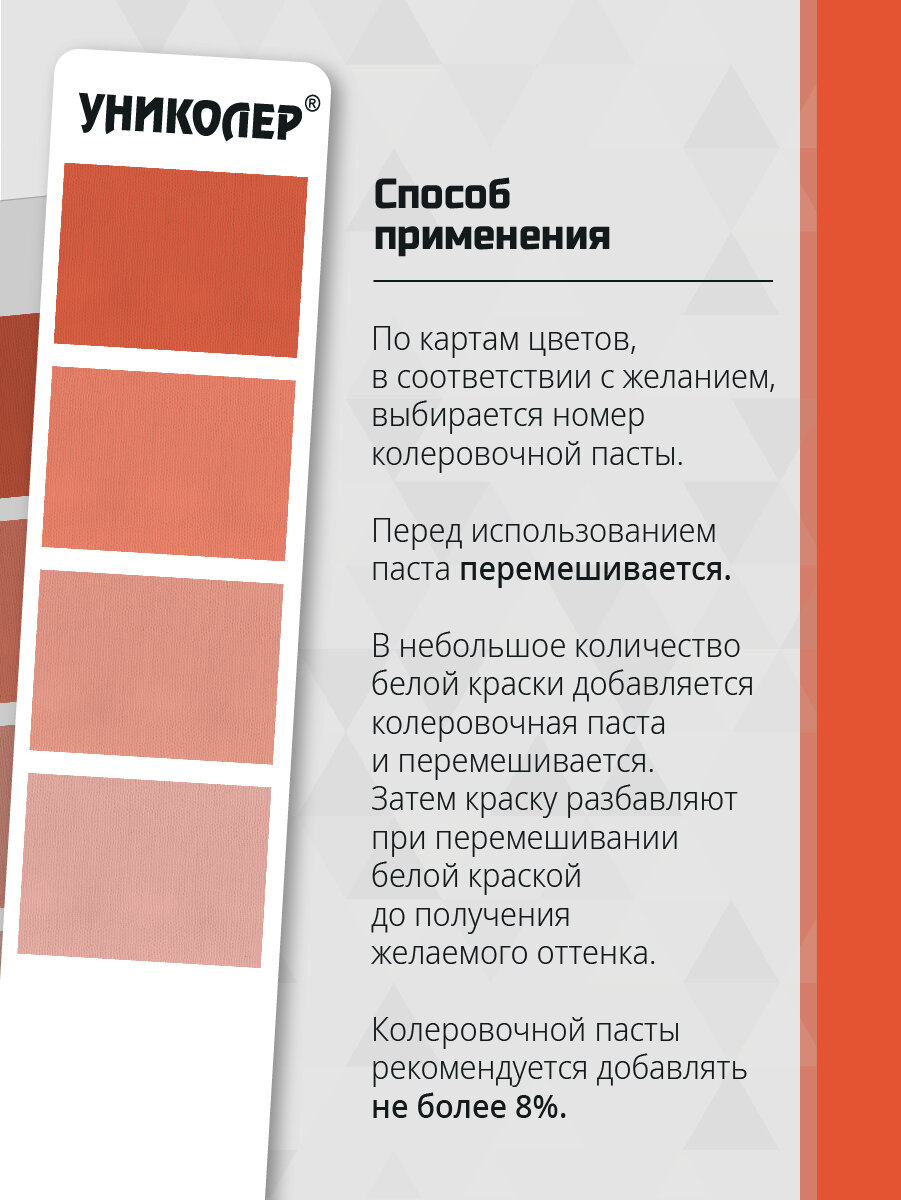 Отзывы на Колеровочная паста 100 мл универсальная "Аква-колор" Униколер № 8.2 оксид красный С4208.2