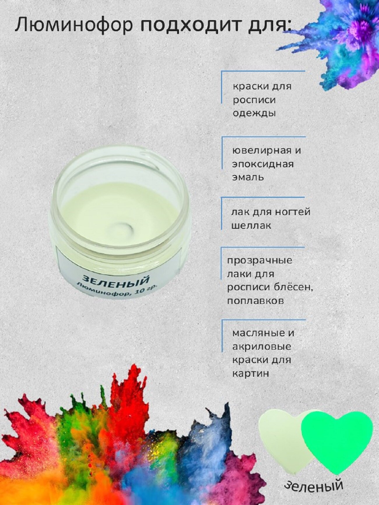 Люминофор Зеленый, 10 грамм, Smola-vrn информация: