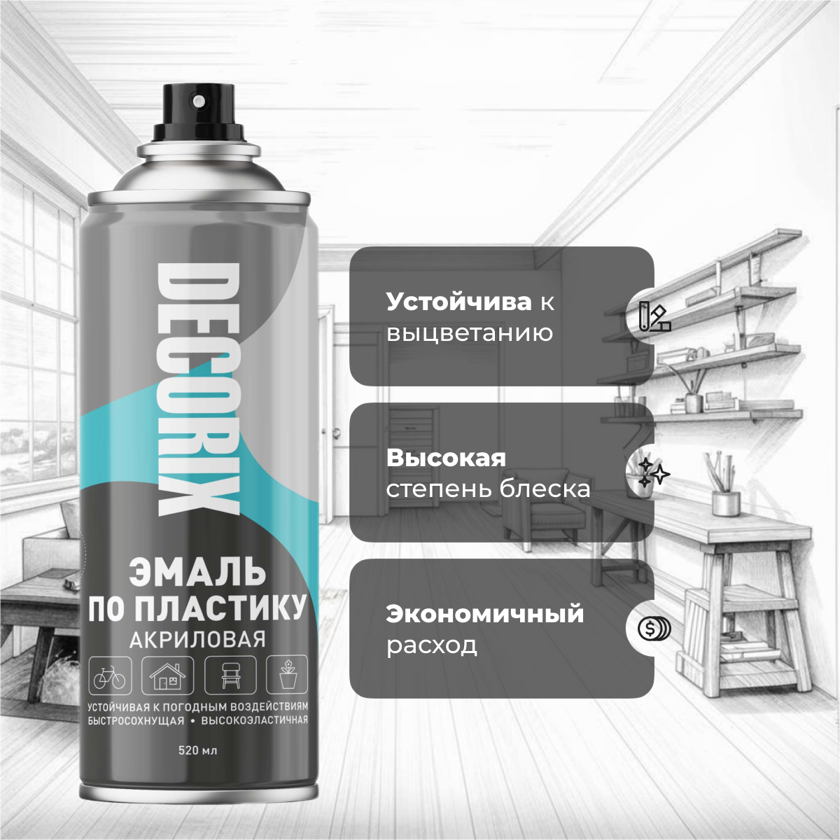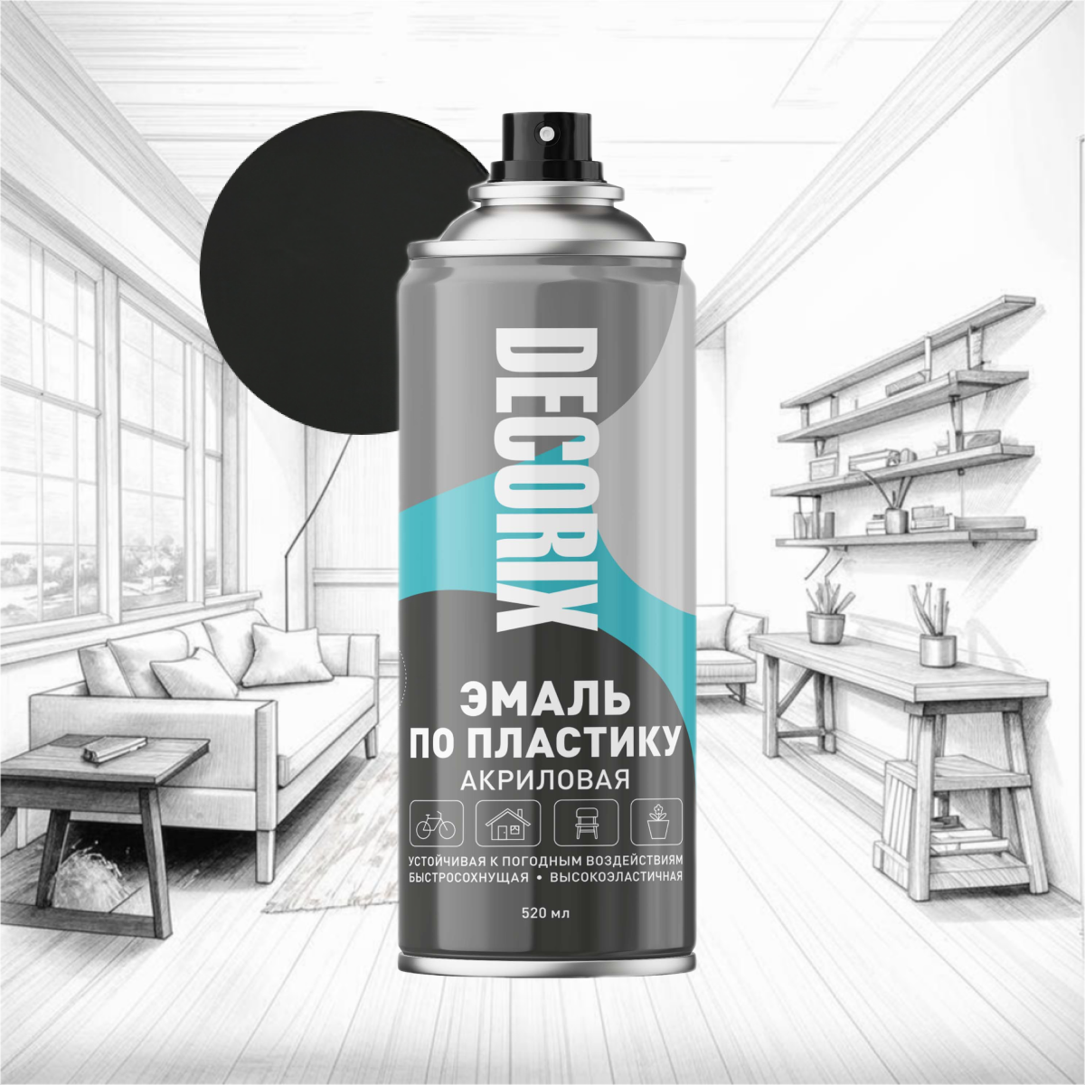 Акриловая краска для пластика Decorix черная матовая 520мл информация: