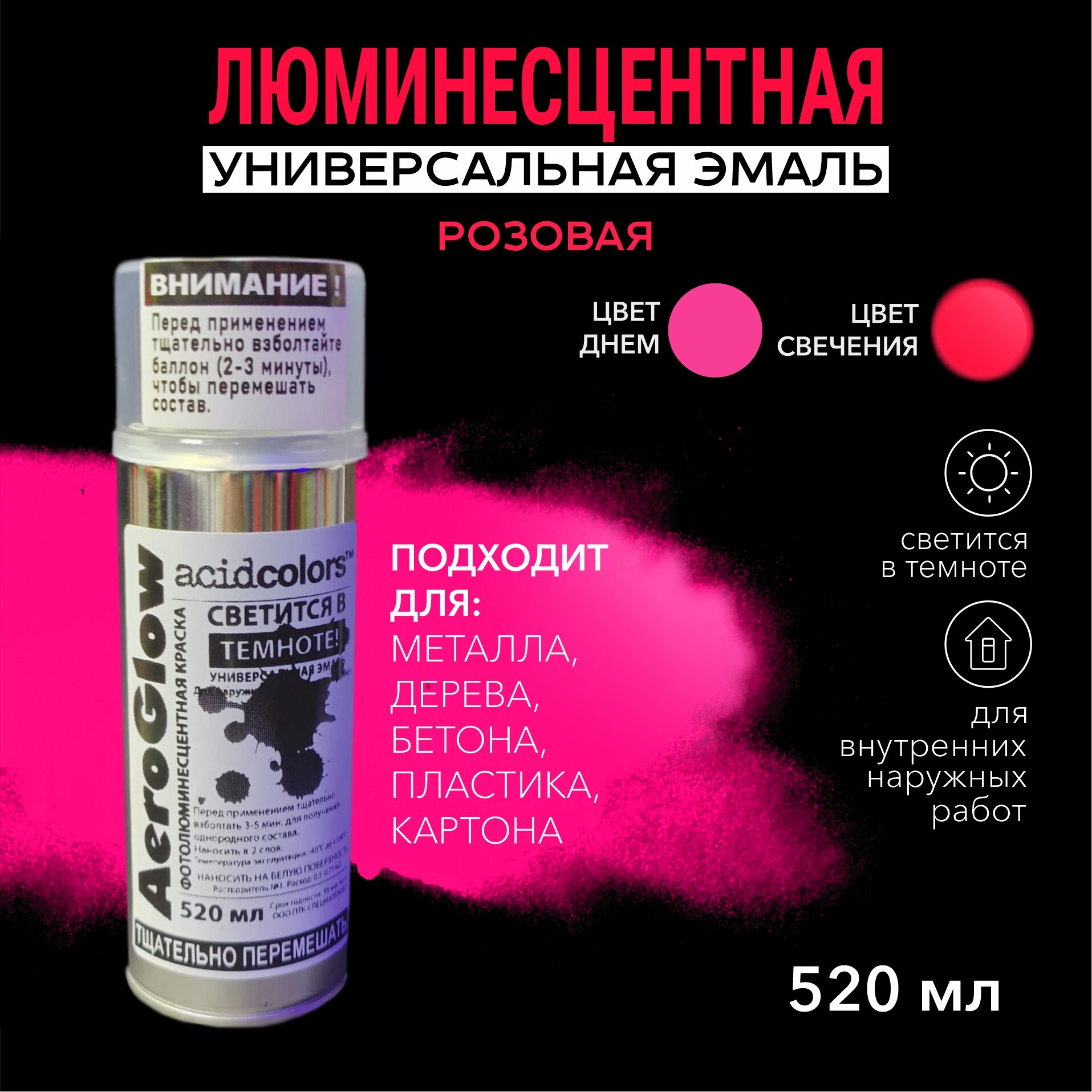 10 цен на Краска AcidColors AeroGlow Luminescent Светящаяся люминесцентная, 520 мл, розовая