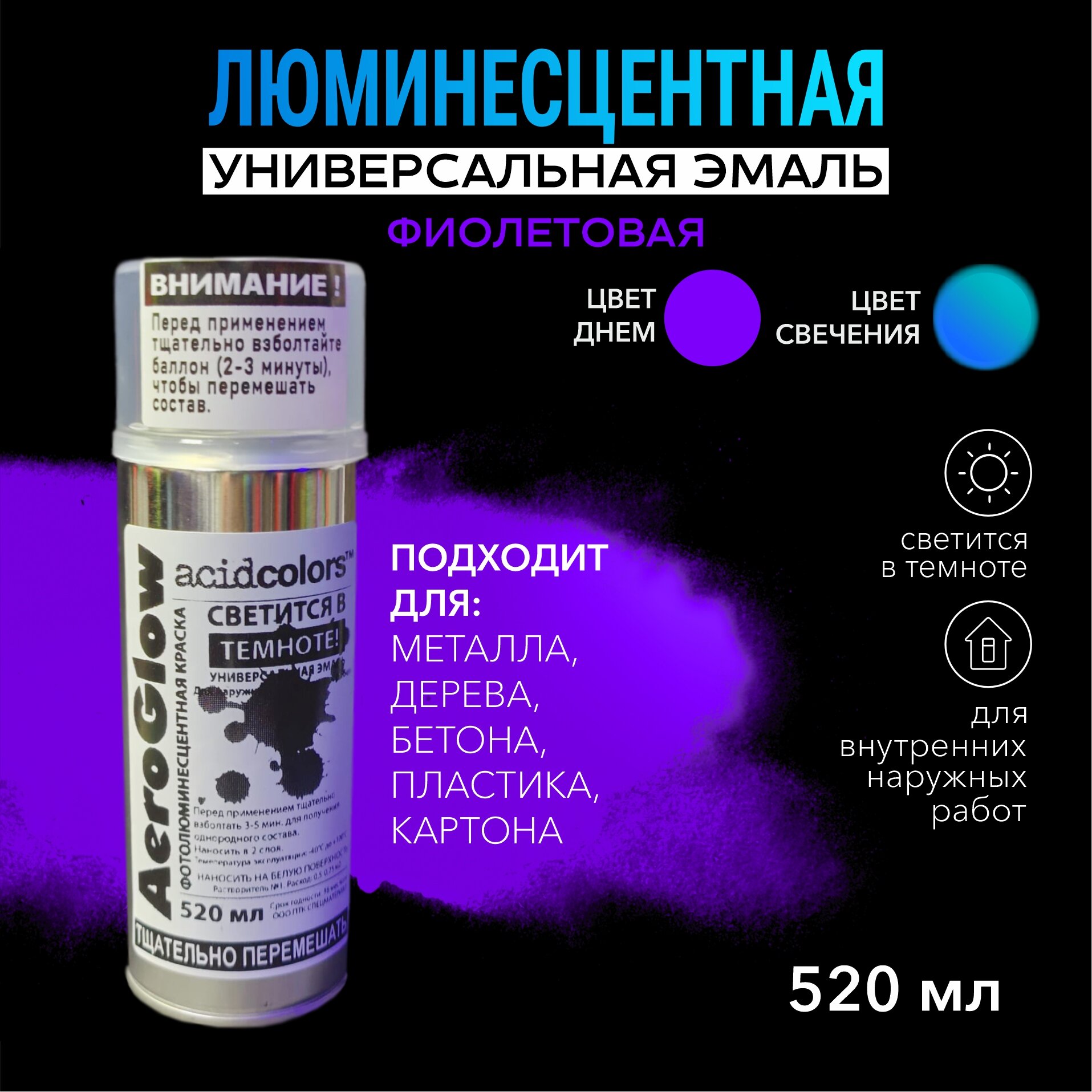 Аэрозольная краска AcidColors AeroGlow Luminescent Светящаяся люминесцентная,520 мл, фиолетовая информация: