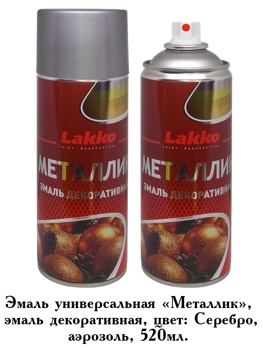 Эмаль металлик Lakko для внутренних и наружных работ, универсальная, аэрозоль, серебро, 520 мл информация: