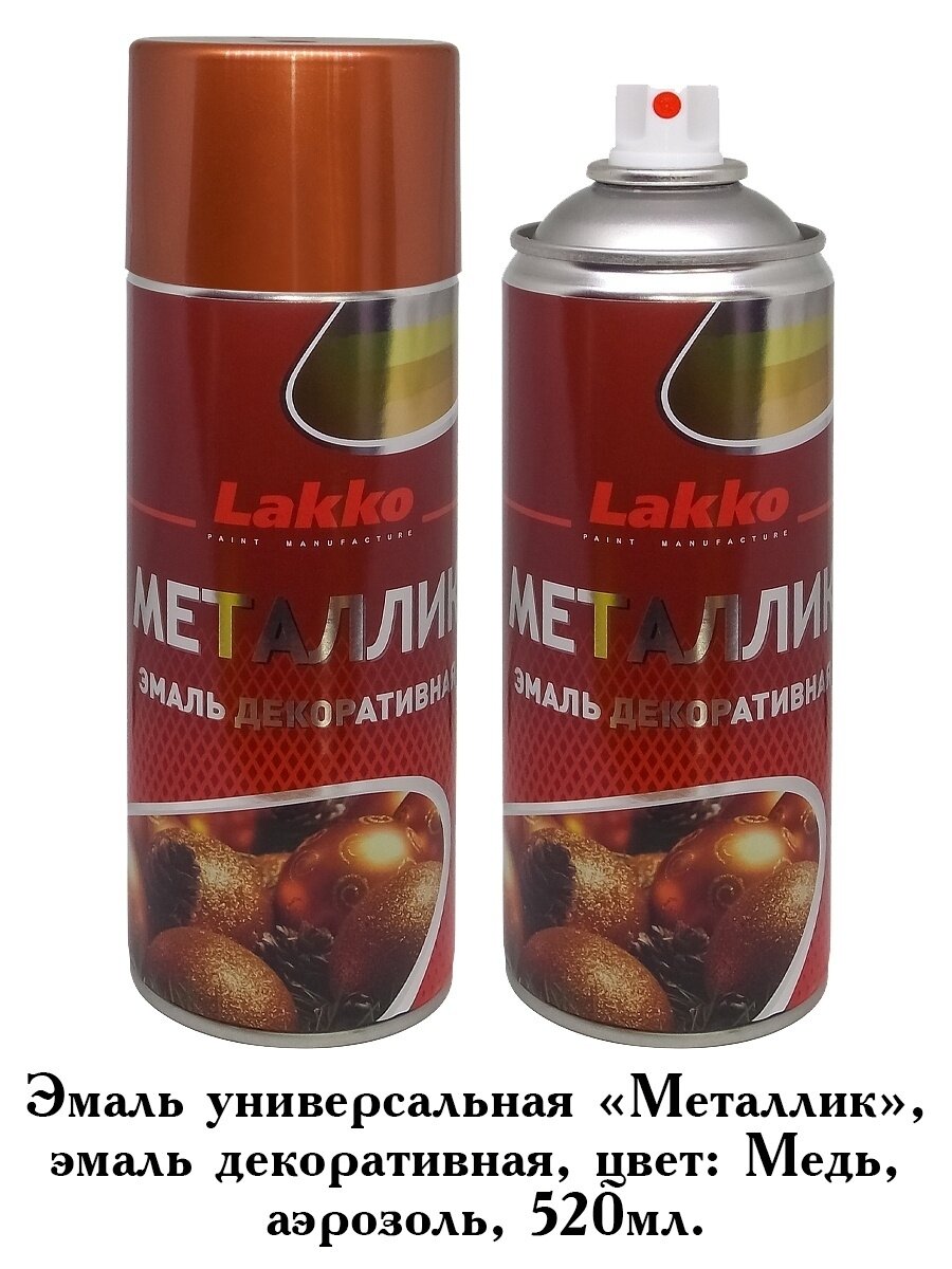 Эмаль металлик Lakko для внутренних и наружных работ, универсальная, аэрозоль, медь, 520 мл информация: