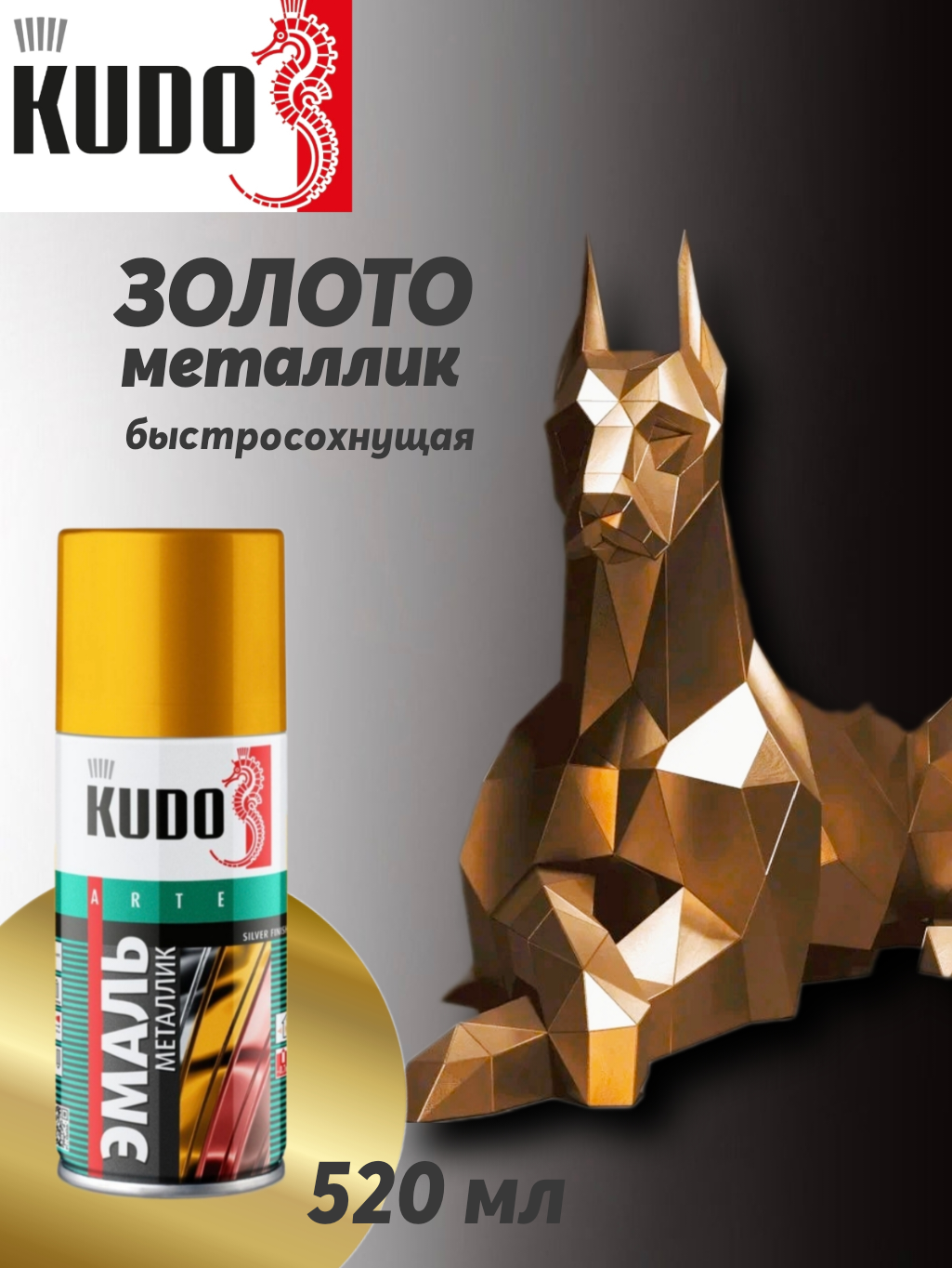10 цен на Краска золотая металлик в баллончике KUDO, для металла, дерева, бетона, 520мл