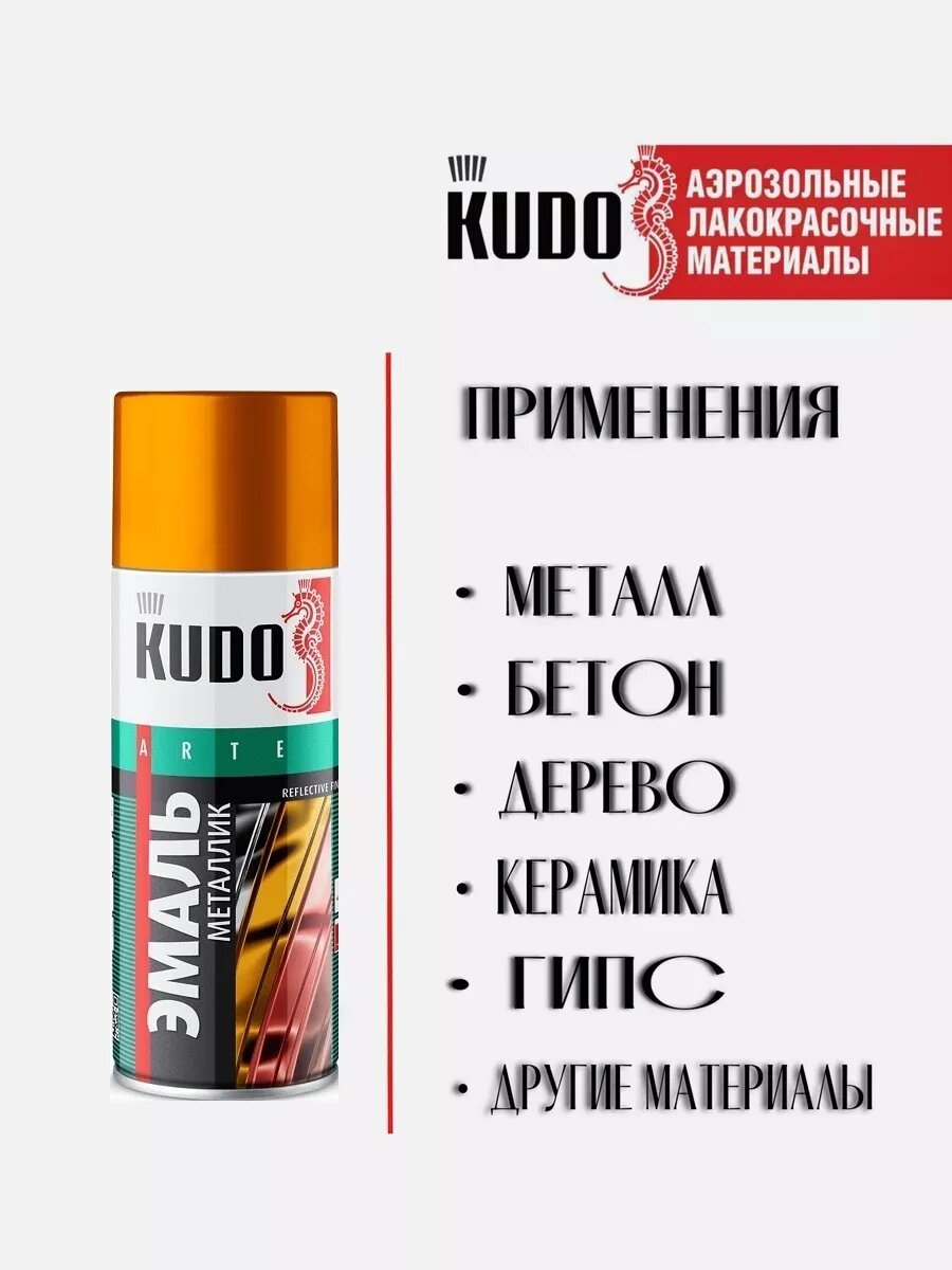 Отзывы на Краска золотая металлик в баллончике KUDO, для металла, дерева, бетона, 520мл