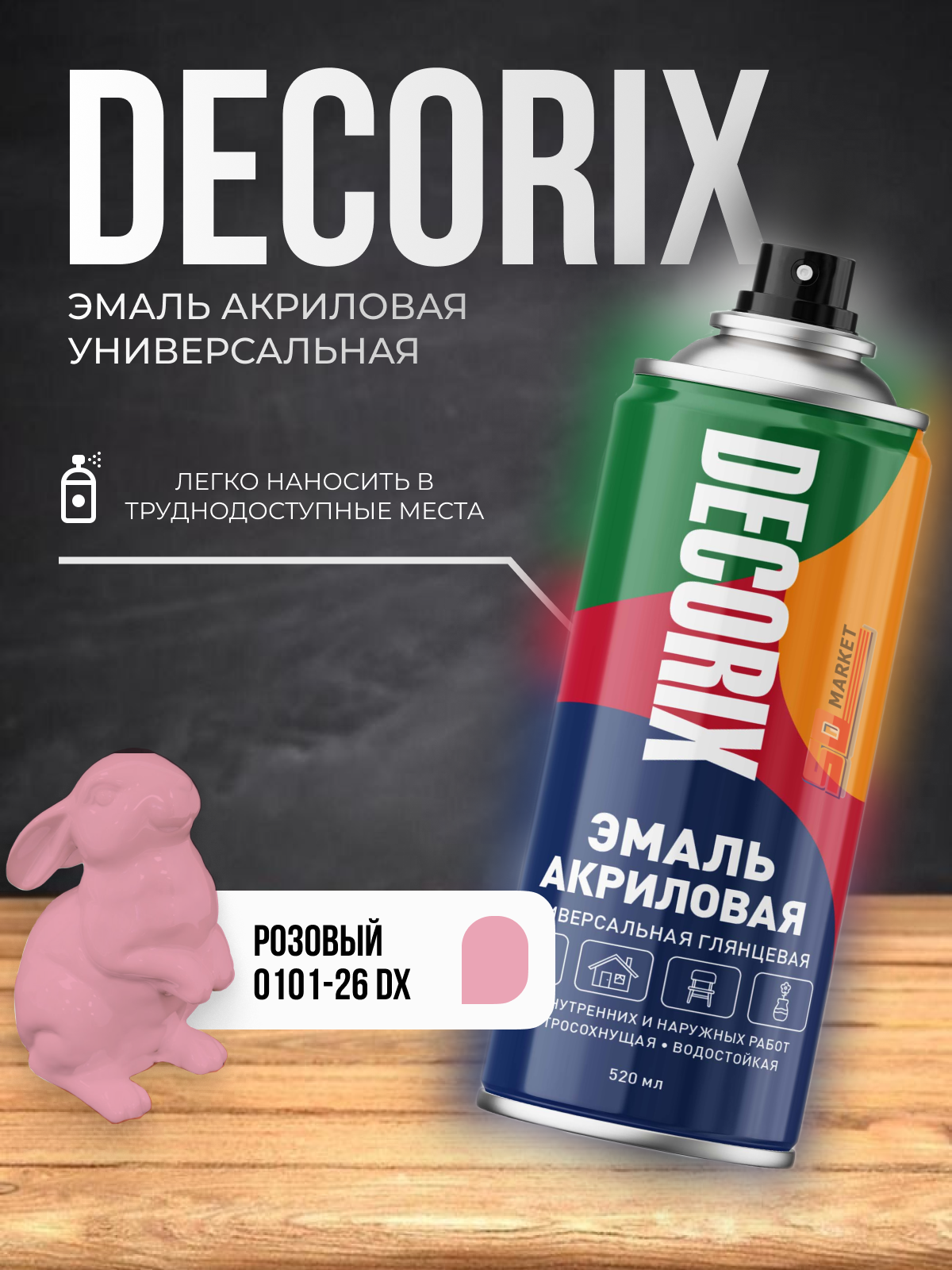 Акриловая краска DECORIX аэрозольная розовая 520мл информация: