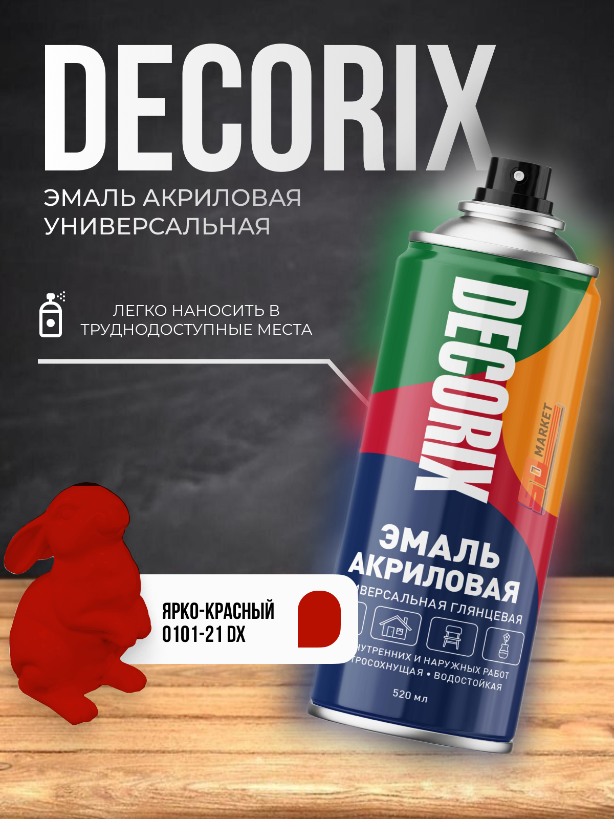 Акриловая аэрозольная краска Decorix 520мл ярко-красная глянцевая информация: