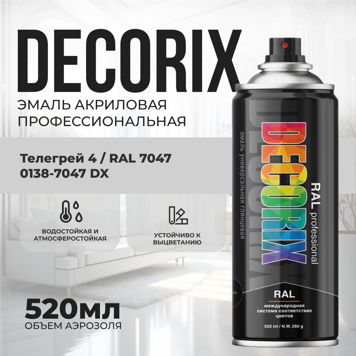 Акриловая краска RAL 7047 телегрей 520мл информация: