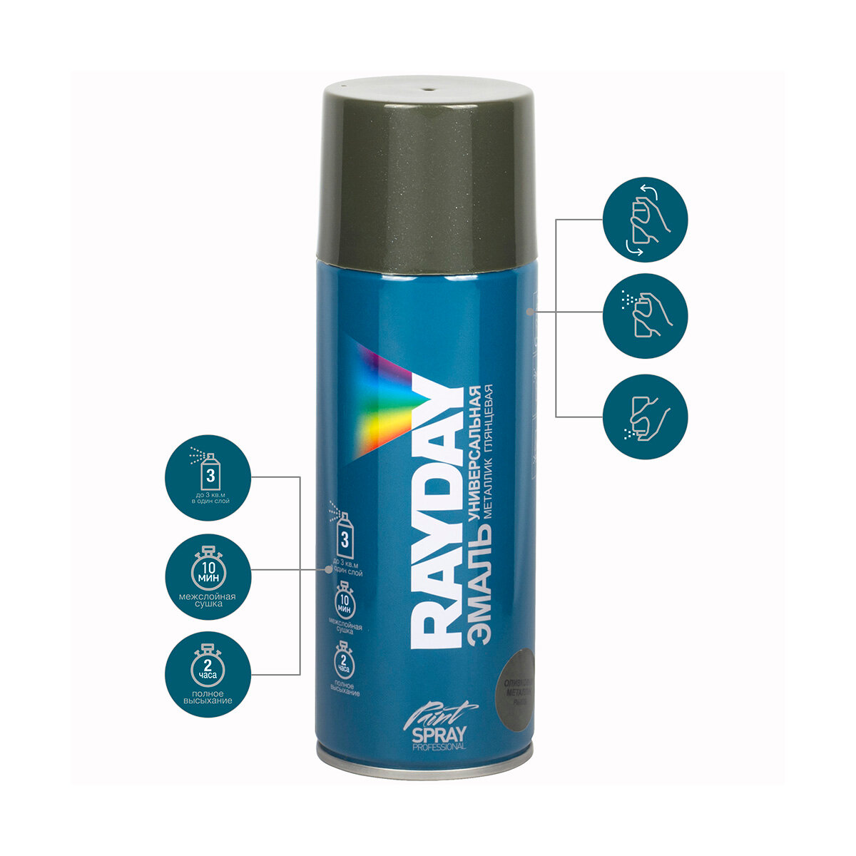 Эмаль RAYDAY универсальная акриловая металлик, оливковый металлик, глянцевая, 520 мл информация: