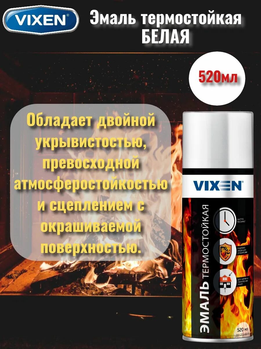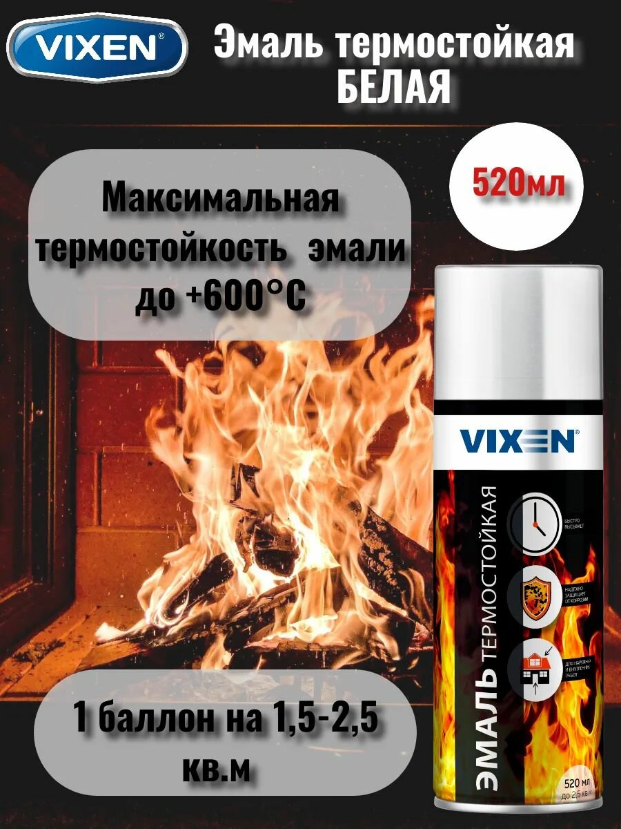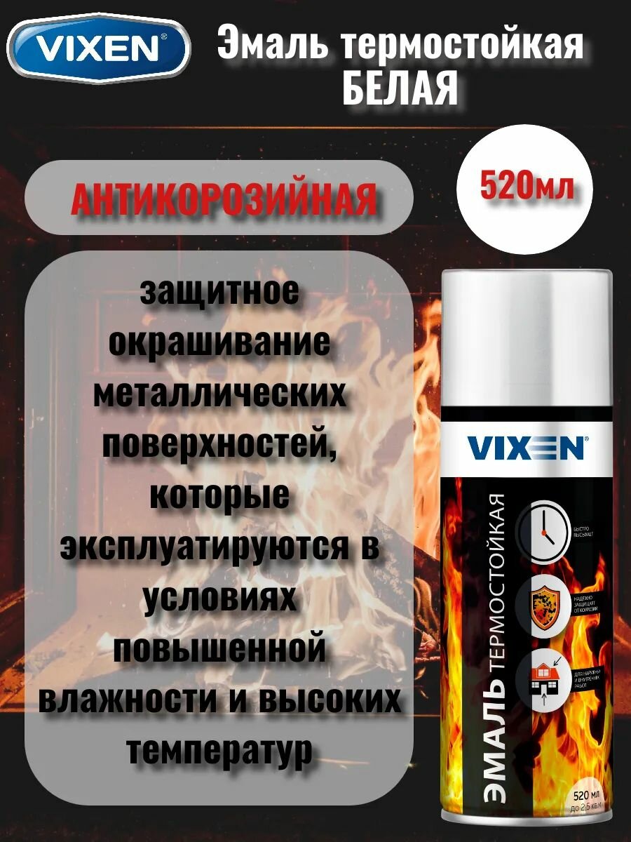 Эмаль термостойкая антикоррозийная VIXEN белая, аэрозоль, 520мл, для защитного окрашивания металлических поверхностей! информация: