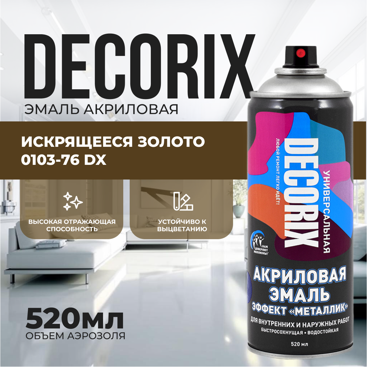 Акриловая краска металлик золото искрящееся 520мл информация: