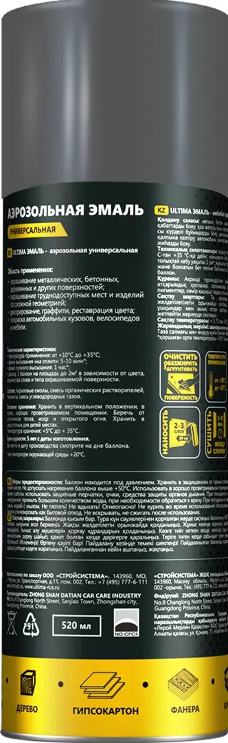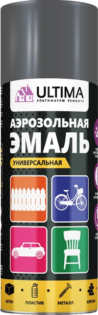 Эмаль аэрозольная ULTIMA ULT0111 RAL 7016 акриловая, универсальная, антрацит, 520 мл информация: