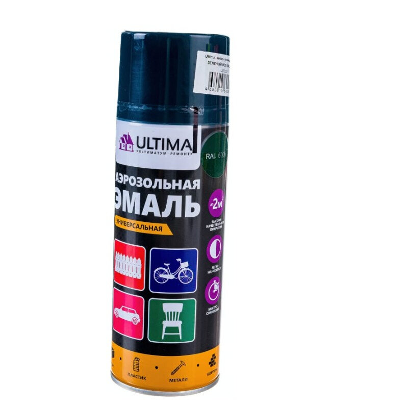 10 цен на Эмаль аэрозольная ULTIMA ULT033 RAL 6005, акриловая, универсальная, зеленый мох, 520 мл