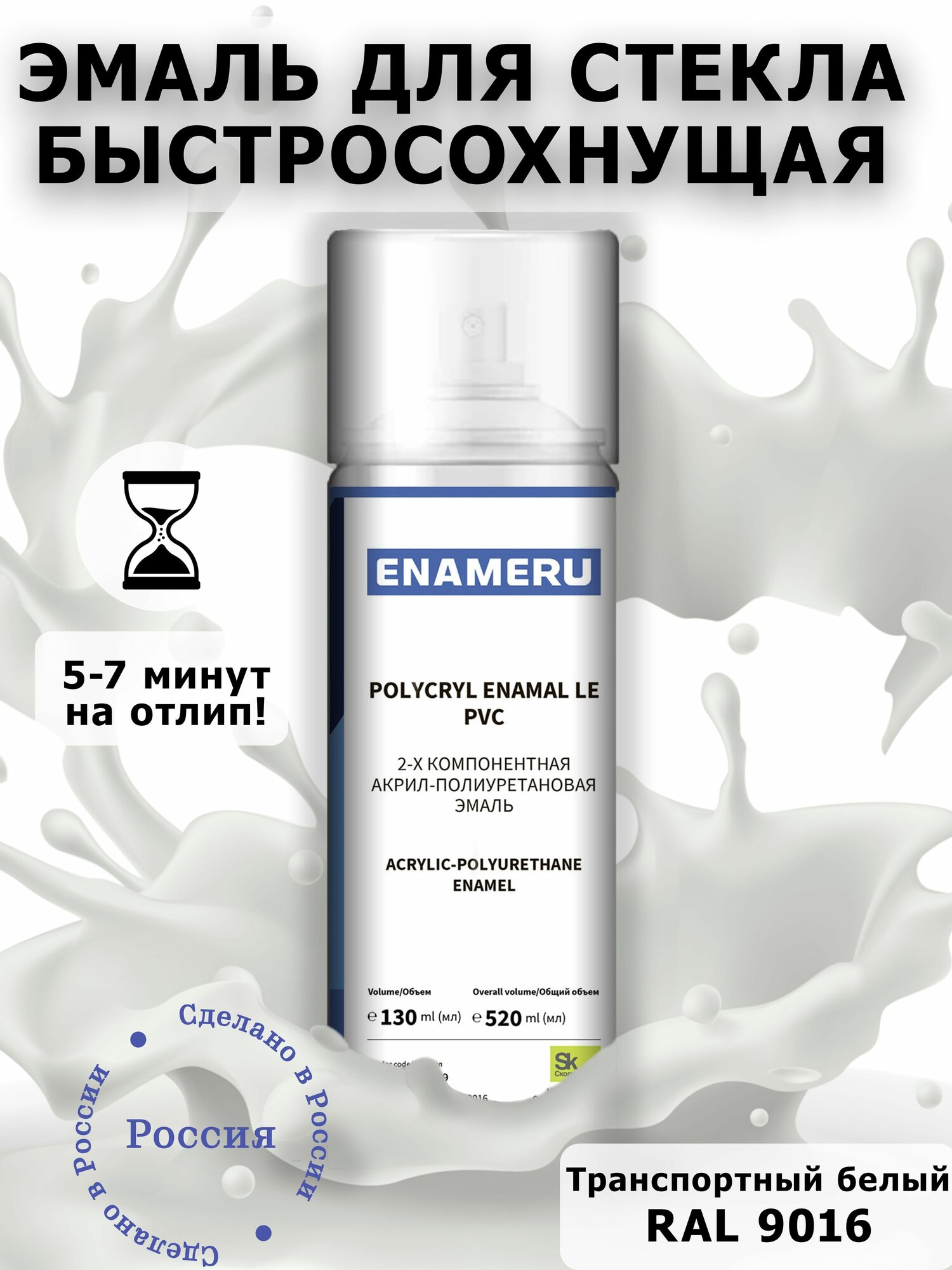 Аэрозольная краска для Стекла, Керамики Энамеру, Акрил-полиуретановая, Полуматовая, Транспортный белый RAL 9016, 0.52л информация: